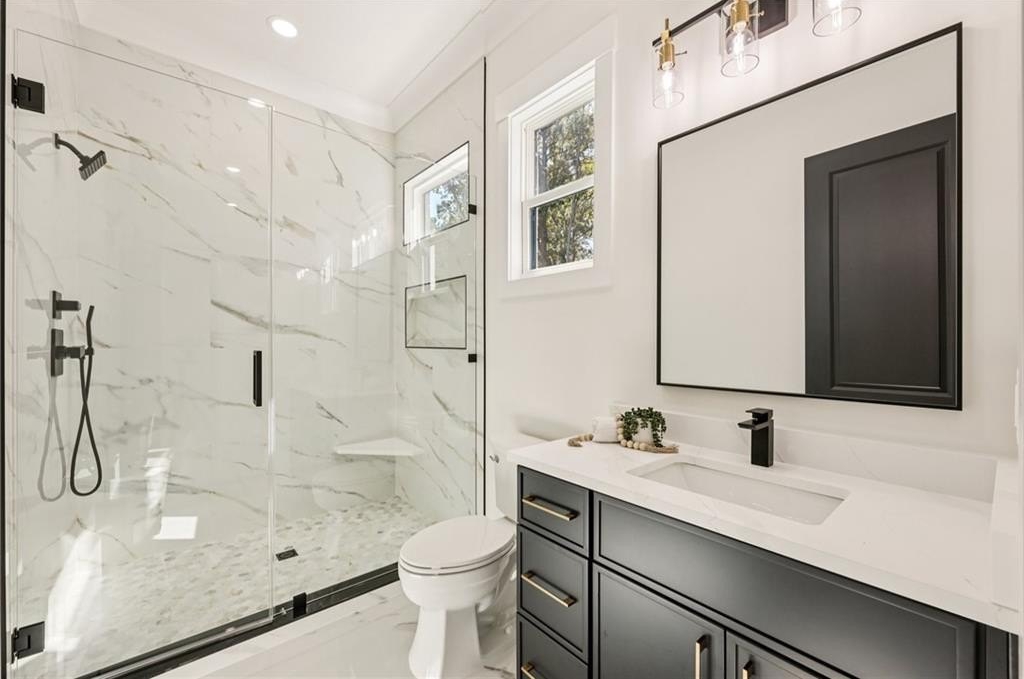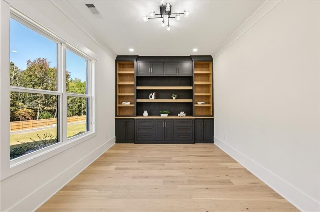 Additional highlights include a dedicated office with built-ins, two full laundry rooms, a custom mudroom, and a 3-car garage with insulated walls, auto openers, and 220V outlets in each bay for EV charging. Energy-efficient systems include foam-insulated attic, zoned HVAC, tankless water heater, enhanced insulation, and ENERGY STAR windows.
