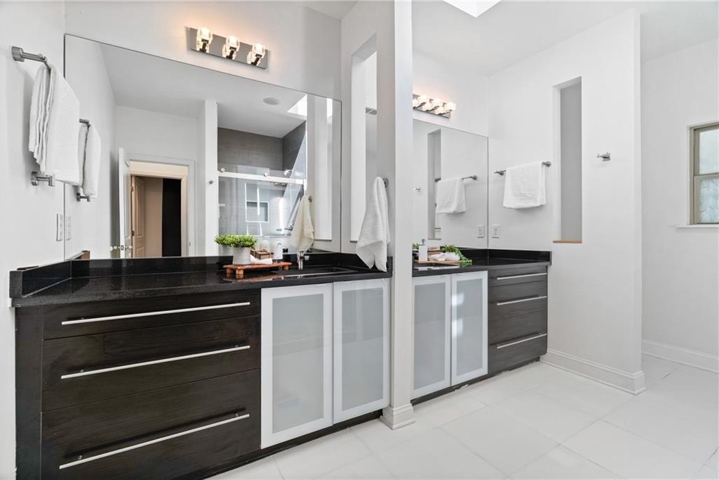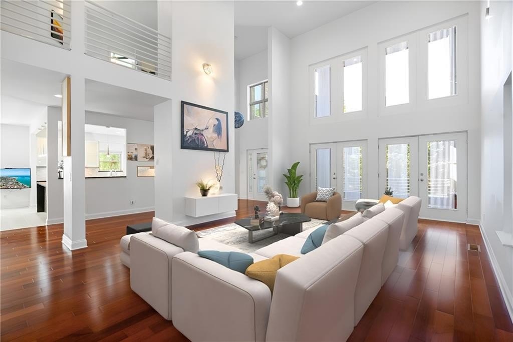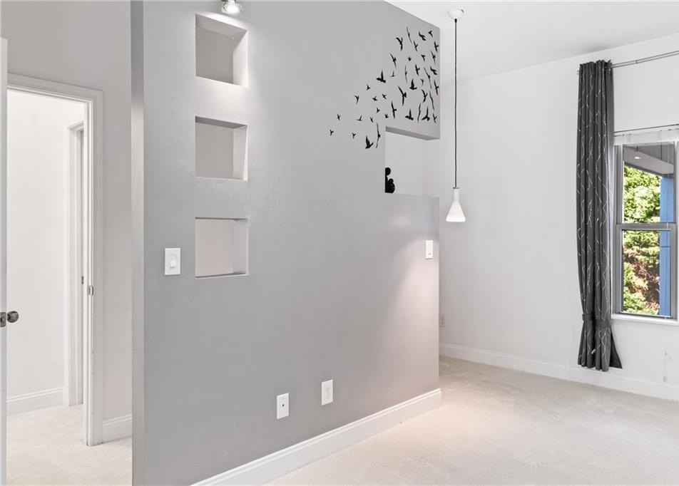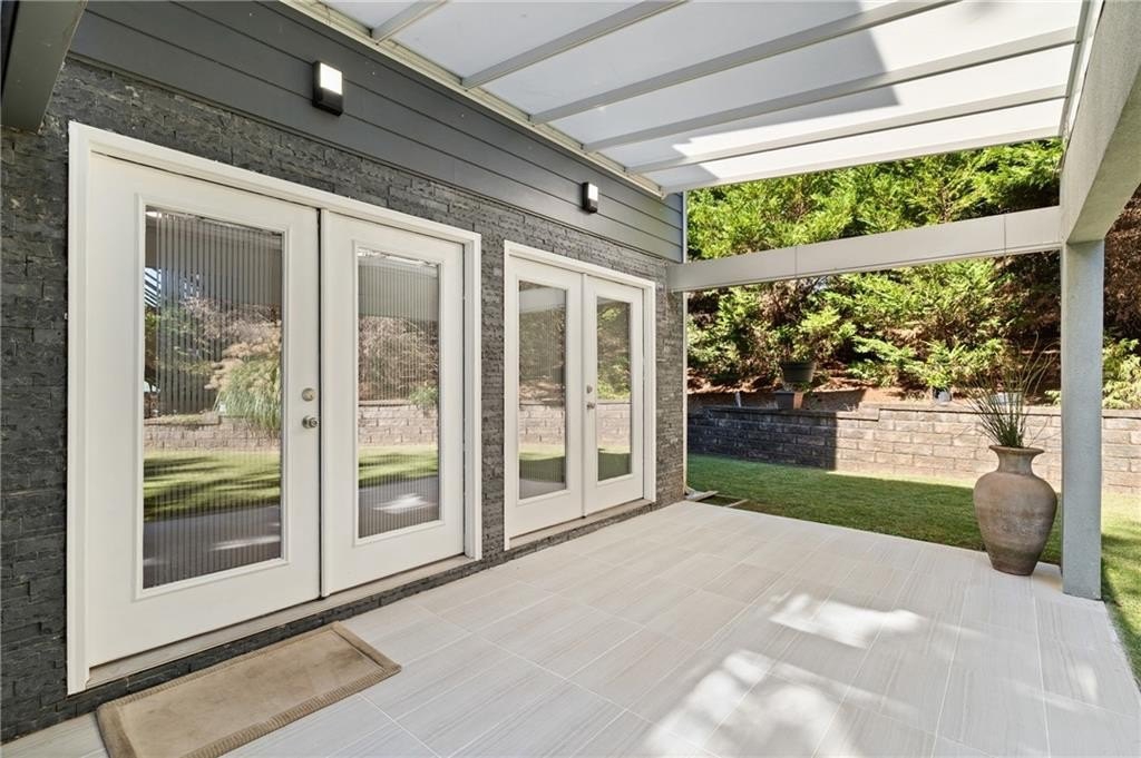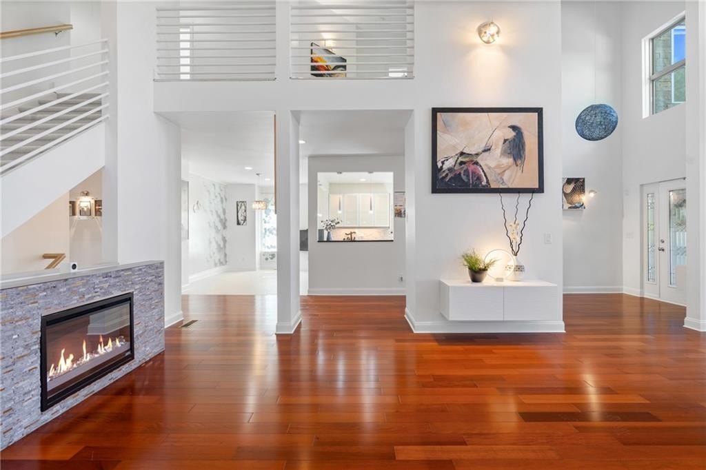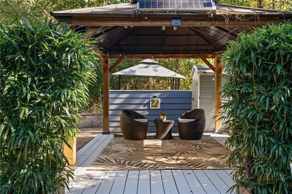 Welcome to this striking contemporary residence, where thoughtful design meets gracious living in a blend that feels both luxurious and warm. As you step into the dramatic two-story great room, walls of windows draw in natural light, while crisp architectural lines and soaring ceilings create a gallery-like strength tempered by comfort. A flexible layout features two kitchens and a welcoming guest bedroom on the main level, making entertaining and daily living both comfortable and convenient. With ample garage space for three vehicles, this home is as practical as it is beautiful. Step outside from the dining room onto the covered back patio, leading to the beautifully landscaped backyard and a charming gazebo—ideal for quiet afternoons or starlit gatherings. Downstairs, the fully finished basement includes an in-law suite with its own full kitchen, an exclusive exterior entry, and an interior entry—perfect for extended family, guests, or a private workspace. The basement also boasts a media room equipped with WiFi projector and a huge 16’ wide projection screen, creating a premium home theater experience. Upstairs, the expansive master suite is a phenomenal retreat: custom shelving, an impressive custom-built walk-in closet, and a spa-level bath that showcases a frameless glass shower and a soaking tub. You’ll love stepping out onto the massive covered deck off the master suite, where morning light and evening breezes mingle above your private, lushly landscaped yard. Every room is designed with lifestyle in mind, from quiet nooks with light streaming in to open entertaining zones that flow naturally. The home was crafted to deliver both grandeur and coziness. Just outside your door, you’ll discover a host of nearby recreation and local treasures. The nearby Sewell Mill Creek Loop in East Cobb Park provides an easy walking trail under tree canopies, perfect for daily strolls or birding. The historic Strand Theatre in Marietta offers live performances, classic films, and cultural events in a beautifully restored atmosphere. This home offers an exceptional balance: bold, contemporary architecture with inviting spaces; indoor sophistication with seamless outdoor living; and a prime location that places you minutes from nature, culture, and the charm of Marietta.