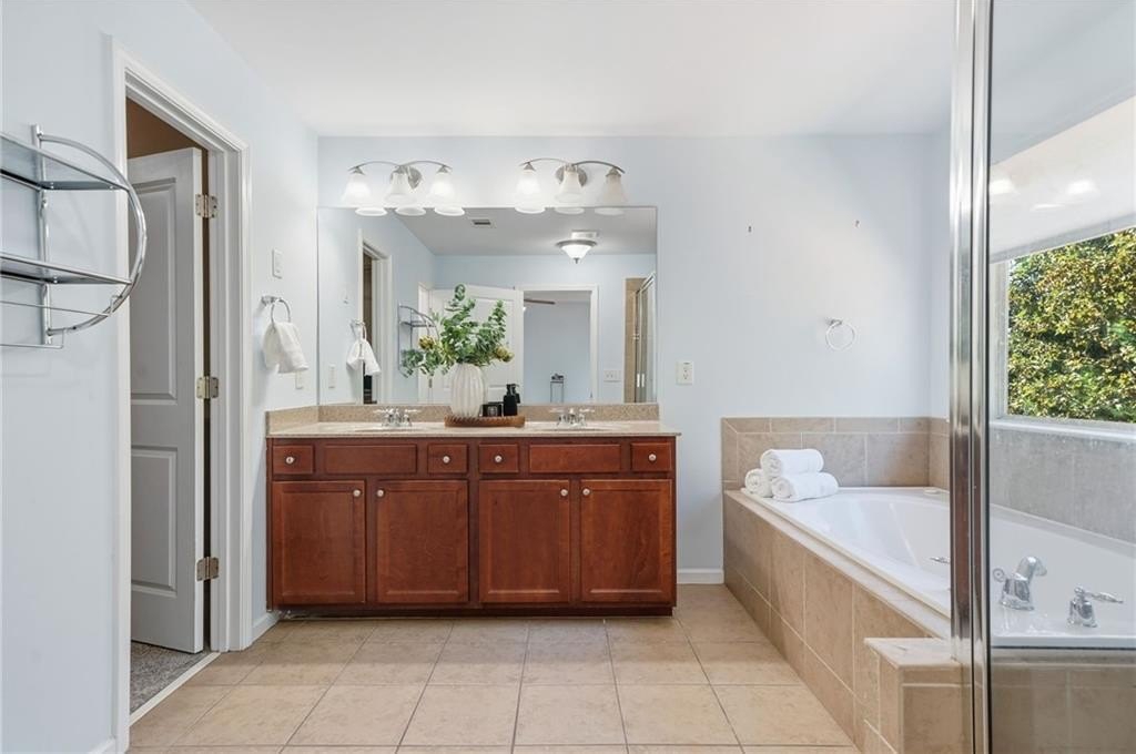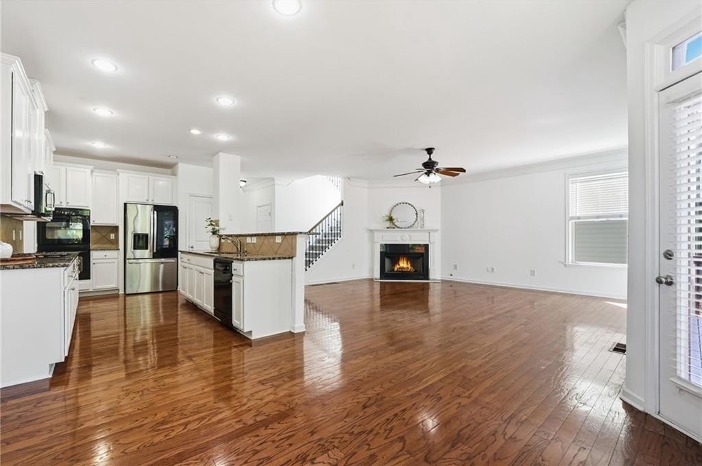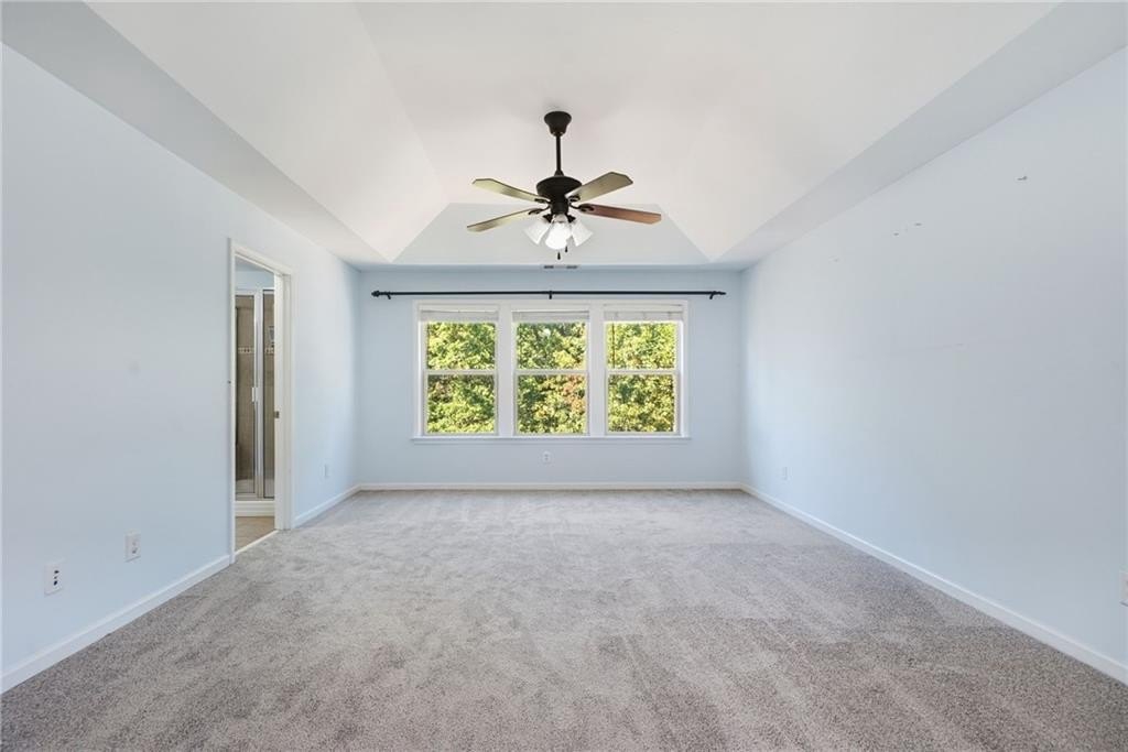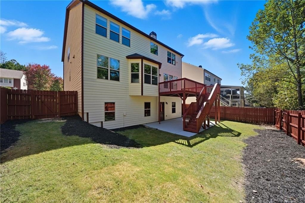 Nestled in the sought-after Champions Run community, this elegant home blends classic charm with modern comfort in a setting designed for both everyday living and effortless entertaining. Step through the spacious front porch and feel instantly at home. A grand two-story foyer welcomes you with natural light and an immediate sense of openness, setting the stage for what’s to come. Just beyond, a refined dining room with coffered ceilings and wainscoting creates an inviting space for memorable gatherings. The heart of the home flows into an open living room and kitchen, designed for both comfort and connection. The kitchen offers abundant counter space, generous cabinetry, and a double oven that makes entertaining effortless. Alongside the main living areas, a guest bedroom on the main level adds versatility and ease. Step outside from the living room onto the expansive back deck—perfect for summer entertaining and weekend BBQs. Overlooking a fully fenced, lushly landscaped backyard, this space offers the ideal backdrop for gathering with friends or relaxing at the end of the day. Below, a walkout from the unfinished daylight basement leads to a back patio and garden area, creating seamless indoor-outdoor living. Upstairs, a secondary bedroom is enhanced by its own large covered balcony—a perfect spot to enjoy quiet mornings or sunset views. Nearby, the master bedroom is filled with natural light, highlighted by a vaulted cathedral ceiling and a cozy sitting area that invites rest and retreat. The home has been freshly painted throughout and features new carpet upstairs, adding a clean, updated feel to the living spaces. Beyond your lot line, the community is enriched with amenities to support an active, balanced lifestyle. Access to a swimming pool, tennis courts, and a family-friendly playground provide daily opportunities for recreation and connection. Nearby, George Pierce Park, the city’s largest park at 304 acres, offers trails, athletic fields, a pond, playgrounds, and scenic green space to explore. The nearby Suwanee Creek Greenway adds miles of inviting pathways winding through wooded landscapes—perfect for walking, running, or biking. The community’s robust amenities package speaks to both active living and lasting enjoyment for all ages. This home gracefully blends architectural charm, comfortable living zones, and desirable amenity access. It’s a place where everyday life and shared moments are equally well accommodated. Let this property be where your next chapter begins.