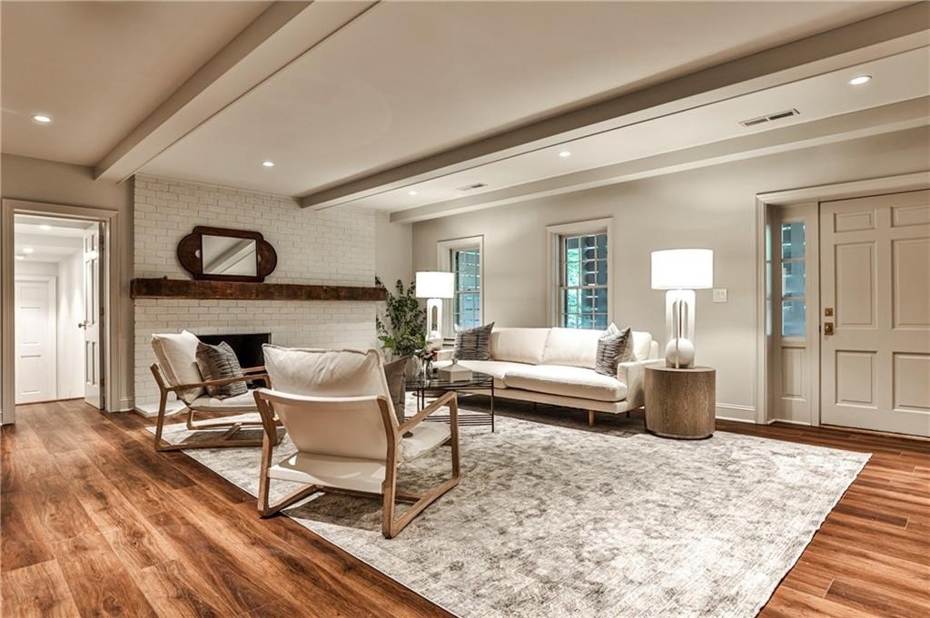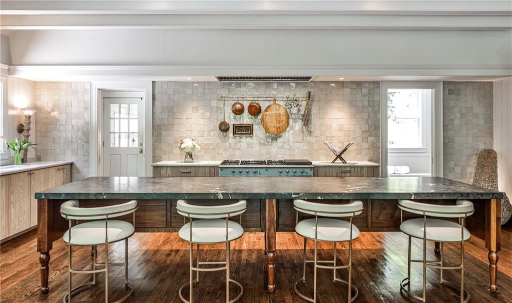 Features include a French-inspired chef’s kitchen with LaCanche range, limestone fireplace, fluted living room opening to the walk-out pool and cabana, and a primary wing with spectacular closets and a Viola marble spa bath. Upstairs holds four ensuite bedrooms; the terrace level offers a lounge, gym with infrared sauna, guest suite, and a secret "Speak Easy" wine cellar with hidden hydraulic staircase to the family room. Minutes to Lovett, Westminster, Buckhead shopping and dining.
