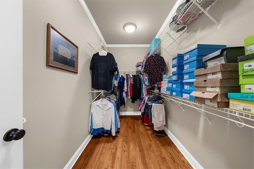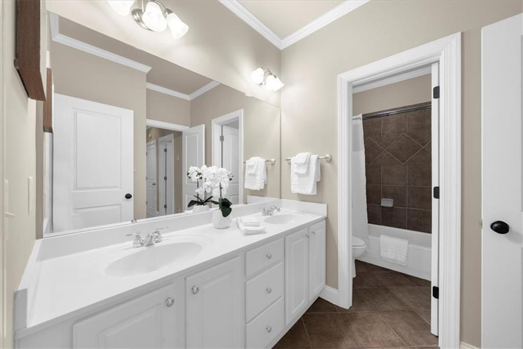 Upstairs, you’ll find the spacious primary suite, three additional bedrooms (each with walk-in closets), a full bath with double vanity, a laundry room, and ample attic storage. The oversized primary suite features a gas fireplace and cozy sitting area, while the luxurious ensuite bath offers a double vanity, soaking tub, large walk-in shower, water closet, and expansive walk-in closet.