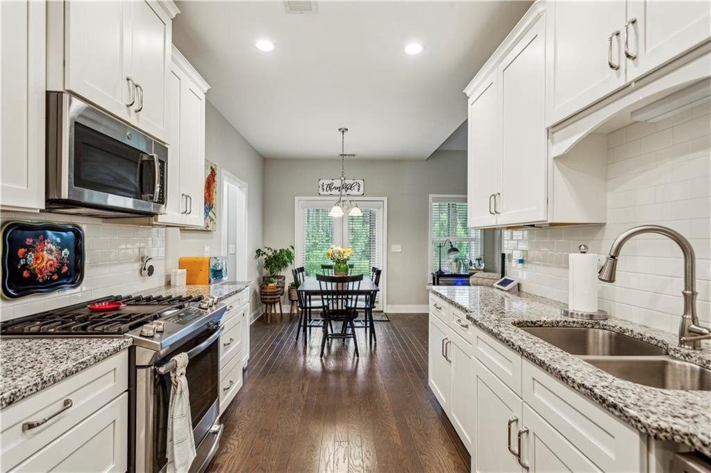 Step inside this beautifully crafted ranch-style home that blends modern comfort with timeless design. Offering 4 spacious bedrooms and 3.5 bathrooms, this home features a flexible layout ideal for families, guests, or multi-generational living. Each bedroom includes custom closet built-ins for exceptional organization and storage. The open-concept main living area is warm and inviting, highlighted by soaring vaulted ceilings, expansive windows that fill the space with natural light, and a charming brick fireplace that anchors the room. Hardwood floors flow seamlessly throughout the home, even in the bedrooms adding a touch of elegance and continuity. The gourmet kitchen is a true showstopper, complete with granite countertops, stainless steel appliances, crisp white cabinetry, and a walk-in pantry for extra storage. The sunny dining area overlooks the backyard, making it a perfect spot for everyday meals or weekend gatherings. The main-level primary suite offers comfort and convenience, while the large upstairs bonus bedroom includes its own private bath, ideal as a guest suite, teen retreat, or home office. Additional features include a spacious attic for storage, a two-car garage, and a welcoming covered front porch that sets the tone for the home’s warm curb appeal. Nestled in a peaceful and well-maintained neighborhood, this property sits just minutes from shopping, dining, and top-rated schools. With thoughtful upgrades and a floor plan designed for today’s lifestyle, this home truly checks every box.