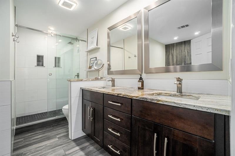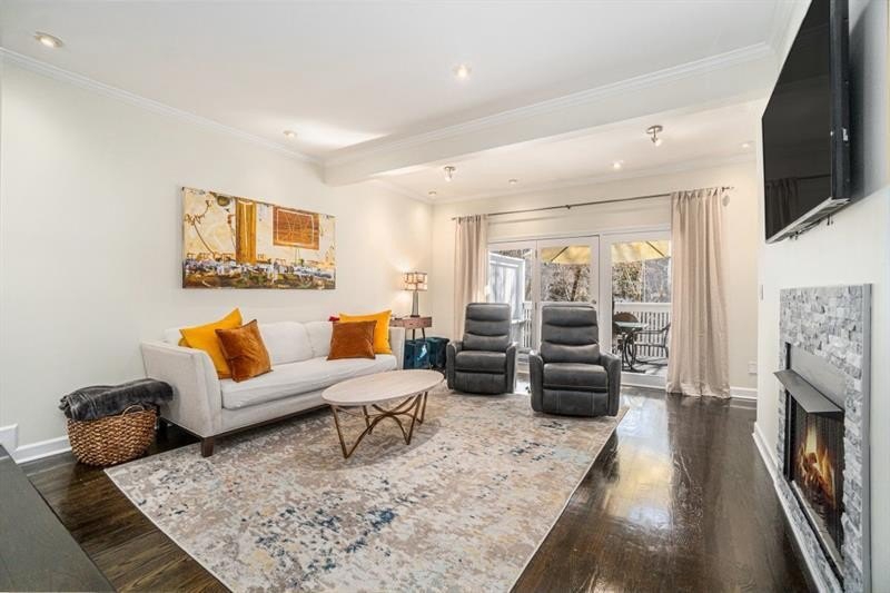 Stunning Updated Townhome in the Heart of Buckhead! Discover Sophisticated Intown Living in this Beautifully Renovated Home perfectly situated in one of Atlanta's most coveted neighborhoods. Step inside from the Charming Covered Front Porch to find Soaring Ceilings and Gleaming Dark Hardwood Floors that flow throughout the main level. At the heart of the home sits the Chef's Kitchen, showcasing Custom White Cabinetry to the ceiling, Stone Countertops, High-End Stainless Steel Appliances, and a Muted Gray Subway Tile Backsplash. The Open Layout creates effortless flow into the Fireside Family Room, making this home ideal for entertaining. A Large Bay Window offers the perfect breakfast nook, while the Formal Dining Area provides plenty of space for hosting friends and family. Unwind in the Family Room featuring Large Windows, a Private Balcony, and a Built-In Wet Bar for cocktail hour. A cozy Alcove offers a perfect home office or reading retreat, while a Stylish Powder Room completes the main level. Upstairs, retreat to the Luxurious Primary Suite, filled with natural light and complete with a Spa-Inspired Ensuite featuring Dual Vanities, a Soaking Tub, and a Glass Shower. A spacious Secondary Bedroom also boasts its own Beautifully Updated Ensuite Bath, offering privacy and comfort for guests. The Terrace Level features a Private Bedroom with Ensuite Bath, ideal for a guest suite, home office, or gym. Step outside to the Expansive Deck perfect for grilling or relaxing and enjoy the convenience of a Two-Car Garage with ample storage. Tucked in a Quiet, Well-Maintained Community with Plenty of Guest Parking, this home offers unbeatable proximity to Shops, Restaurants, Local Trails, and Premier Schools. Enjoy quick access to I-75, I-85, and GA-400, putting all of Atlanta at your fingertips. From brunch spots to sushi bars to every grocery store you could need, this Buckhead location has it all. An Exceptional Blend of Style, Comfort, and Convenience Welcome Home!