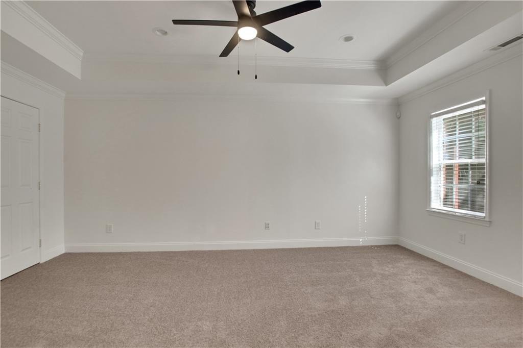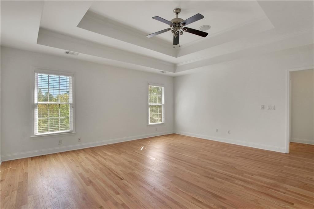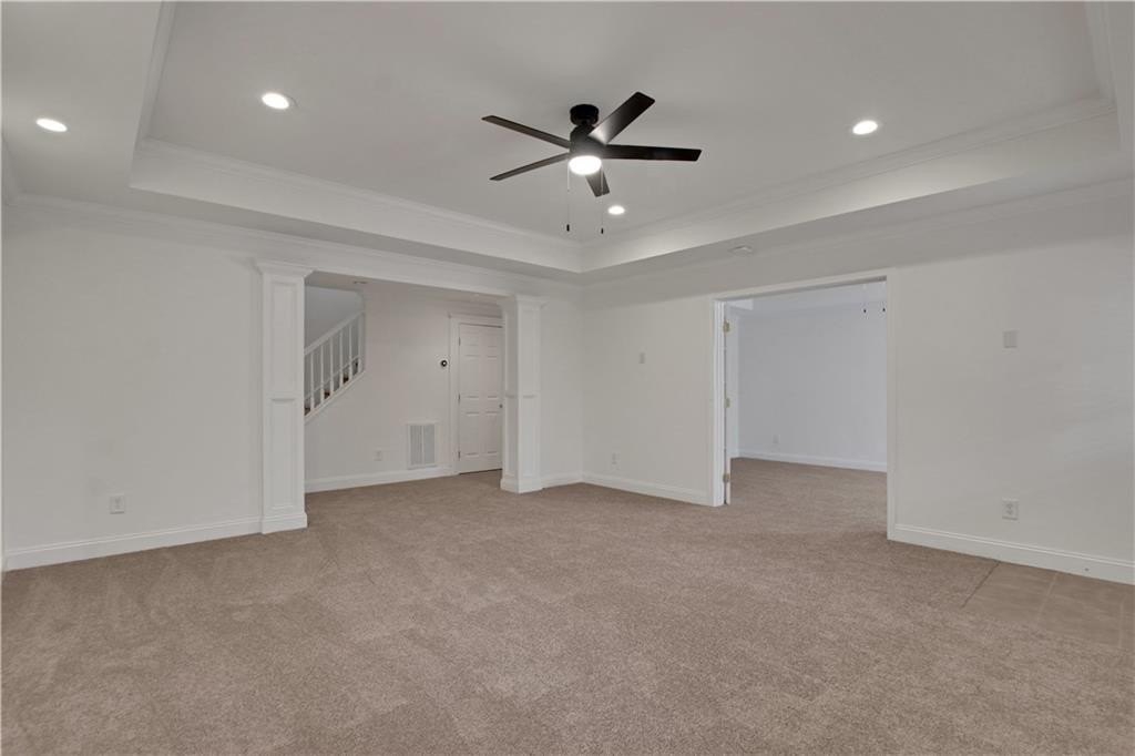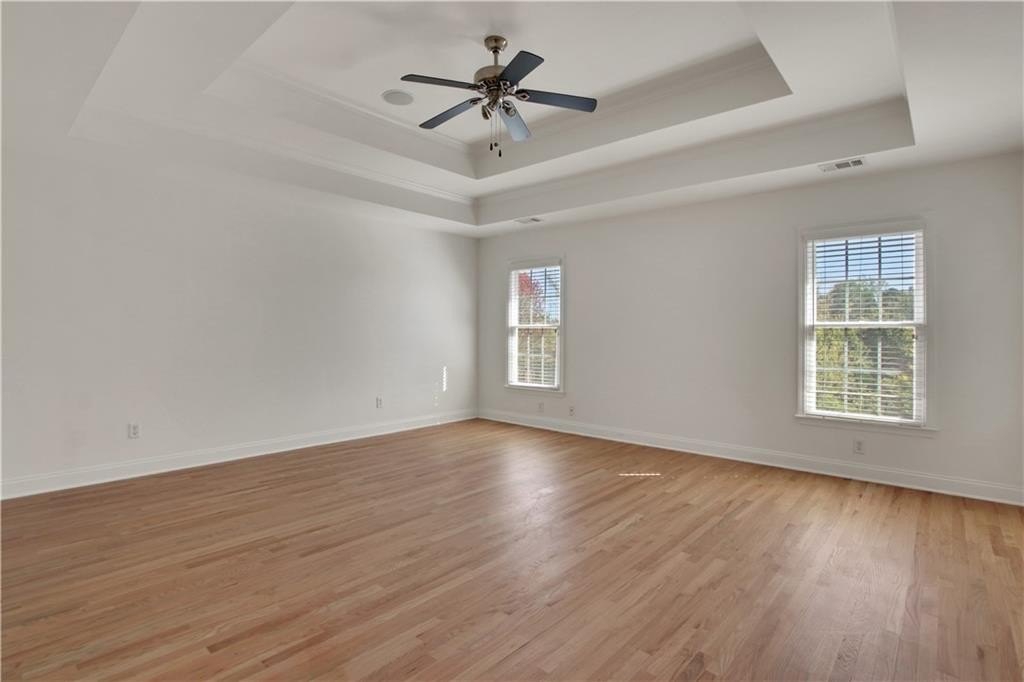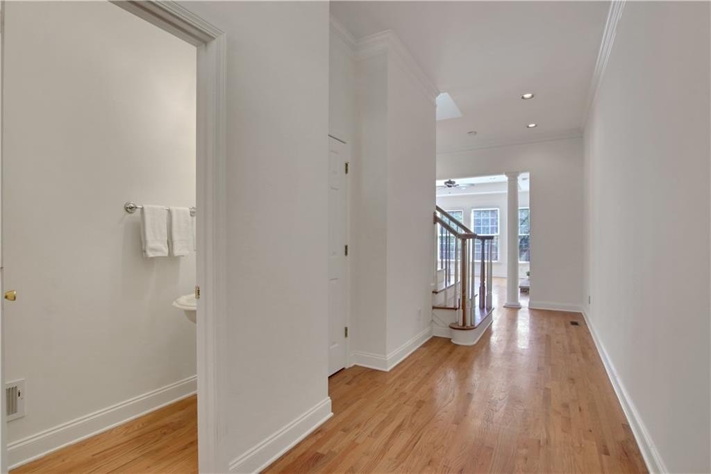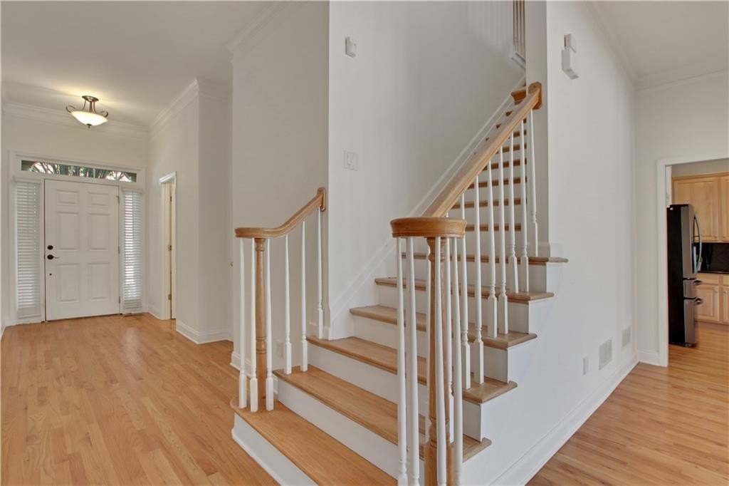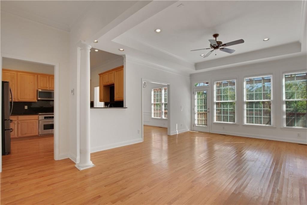 Spacious Townhome in the Heart of Dunwoody! This large 4-bedroom, 4.5-bath townhome with a full finished terrace level is located in one of Dunwoody's most sought-after gated neighborhoods just minutes to Dunwoody Village shops, restaurants, and the library. The main level features ten-foot ceilings, hardwood floors, and an open floorplan ideal for everyday living and entertaining. The inviting great room offers a stacked-stone fireplace framed by space for built-ins or furniture, a tray ceiling, and access to an expansive deck that's perfect for outdoor gatherings. A sunny dining room with elegant molding details and a tray ceiling provides a beautiful setting for meals with family and friends. The kitchen overlooks the family room and is equipped with lightly stained cabinetry, granite countertops, stainless steel appliances, and a walk-in pantry. Convenient kitchen-level entry from the two-car garage means no stairs to climb with groceries. A pretty powder room completes the main floor. Upstairs, wood floors add warmth throughout. The primary suite includes a tray ceiling, a large walk-in closet, and a private bath with dual vanities, a jetted tub, and a separate shower. Two spacious secondary bedrooms each feature ensuite baths and access to the front balcony, while the laundry room is conveniently located on this level as well. The finished terrace level offers wonderful flexibility with a fourth bedroom and full bath, a large media or recreation area wired for surround sound, plus extra unfinished storage space. Fresh paint, wood blinds, and thoughtful updates throughout make this home move-in ready. Enjoy a vibrant lifestyle in a beautiful gated community with tree-lined streets all in close proximity to local favorites like Fresh Market, Publix, and numerous restaurants, with easy access to major highways for commuting or travel.