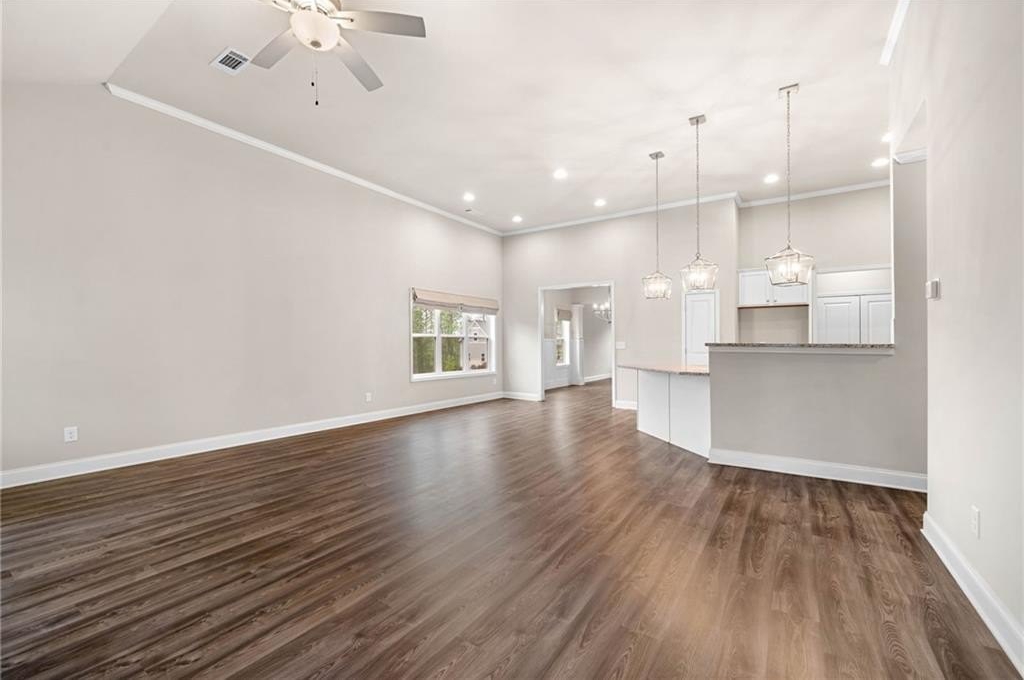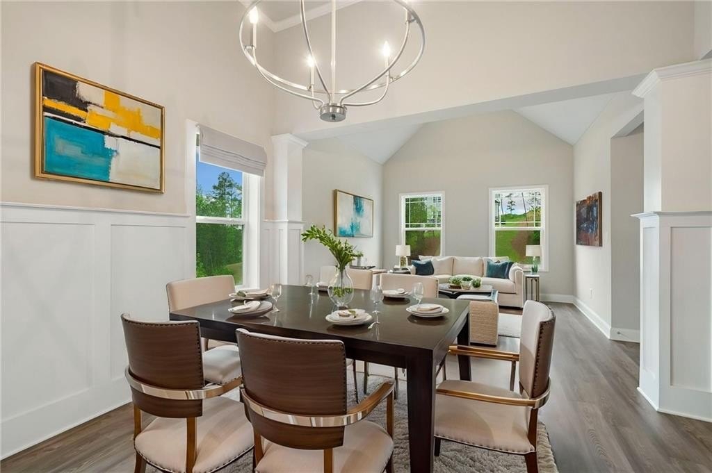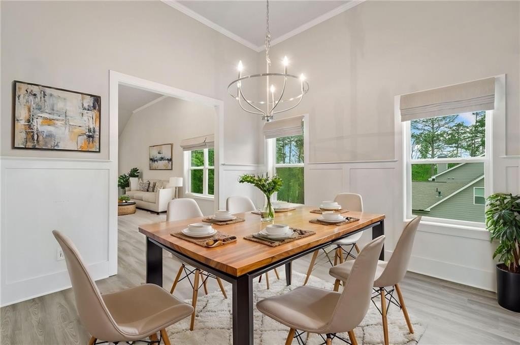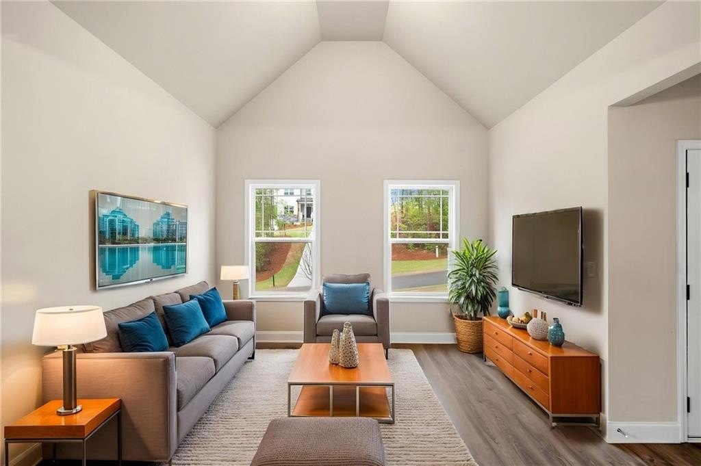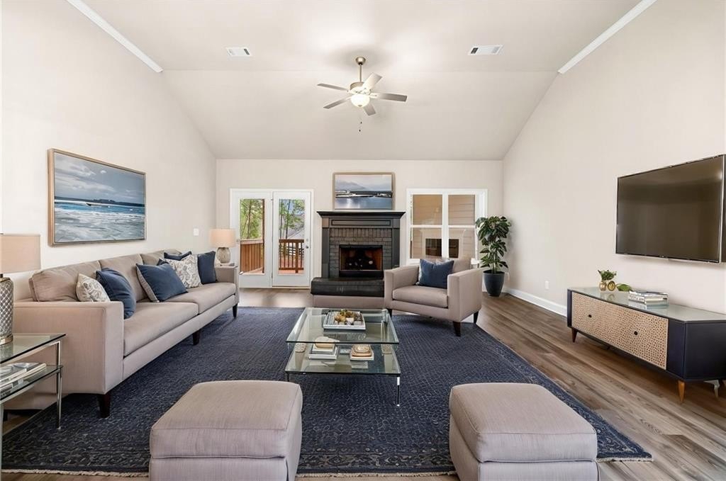Inside, the open floor plan is ideal for both entertaining and everyday living. A vaulted formal living room, separate dining room, and private study off the foyer offer flexible spaces for gatherings or work-from-home needs. The gourmet kitchen overlooks the vaulted family room with a cozy fireplace, while the covered rear deck, complete with its own gas-log fireplace, extends your living space outdoors, offering serene views of the backyard.
