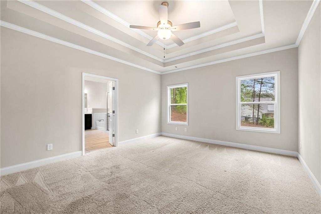 The spacious primary suite serves as a true retreat, featuring a trey ceiling, spa-inspired bath with soaking tub and separate shower, and dual walk-in closets. Additional highlights include two pantry closets, a family foyer/laundry area with direct garage access, and the unfinished daylight basement—offering endless potential for expansion or storage.