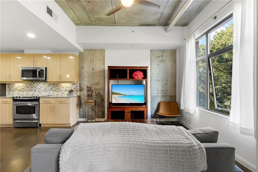 Wonderful opportunity to own in the heart of downtown Decatur where you can walk to everything you need - just blocks to the square, Decatur Marta Station, shops and great restaurants. With a walk score of 94-it truly is a walkers paradise! This modern open loft-style condominium features stainless steel appliances, granite breakfast bar, high concrete ceilings, 2 bedrooms, and a private balcony. Lots of storage. You will love the well lit, secured assigned parking spot in the secure parking deck. The parking spot is 128 just across from the elevator. It's super convenient. This 4th floor unit has treetop views and very private. Contemporary and secure, live, work, and play community with the convenience of an on site pool and fitness center. Easy commute to Emory University and medical center, the CDC, and the VA Hospital with short commutes to Druid Hills, Midtown, and Virginia Highlands.