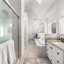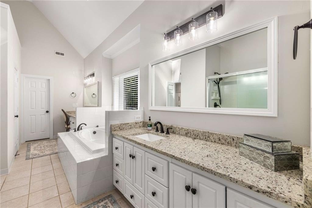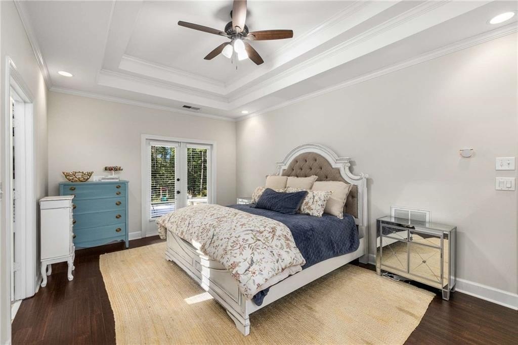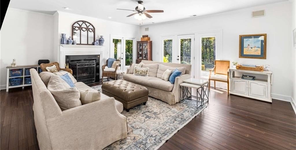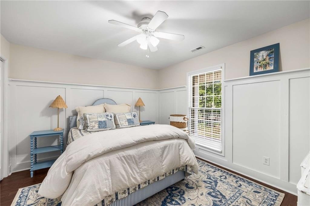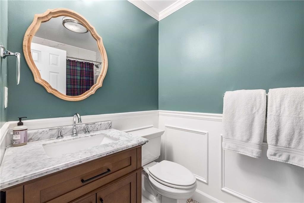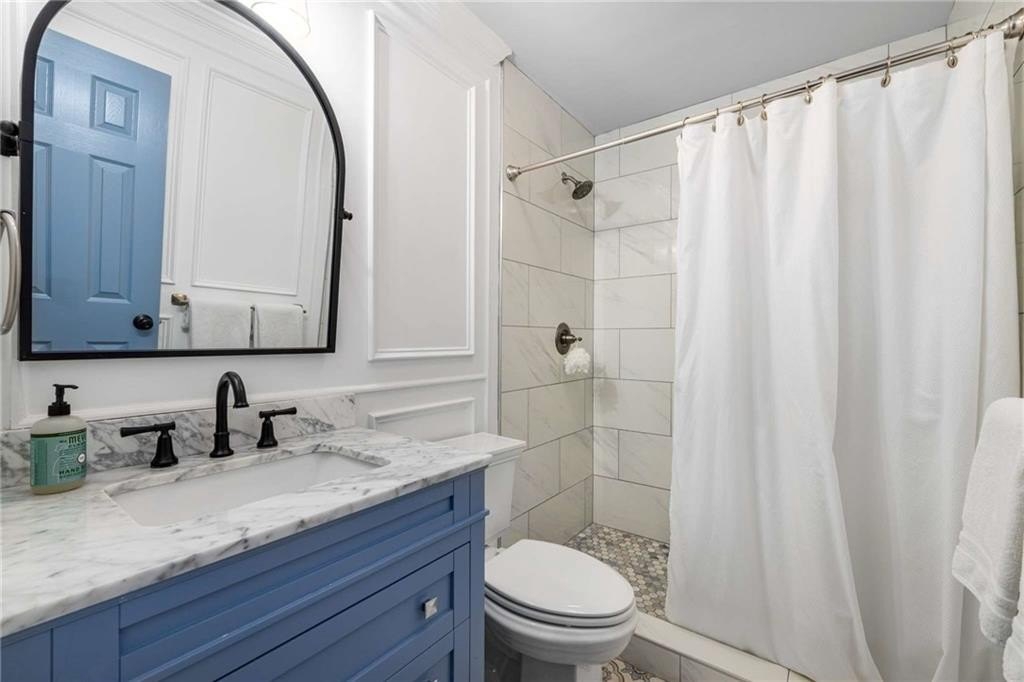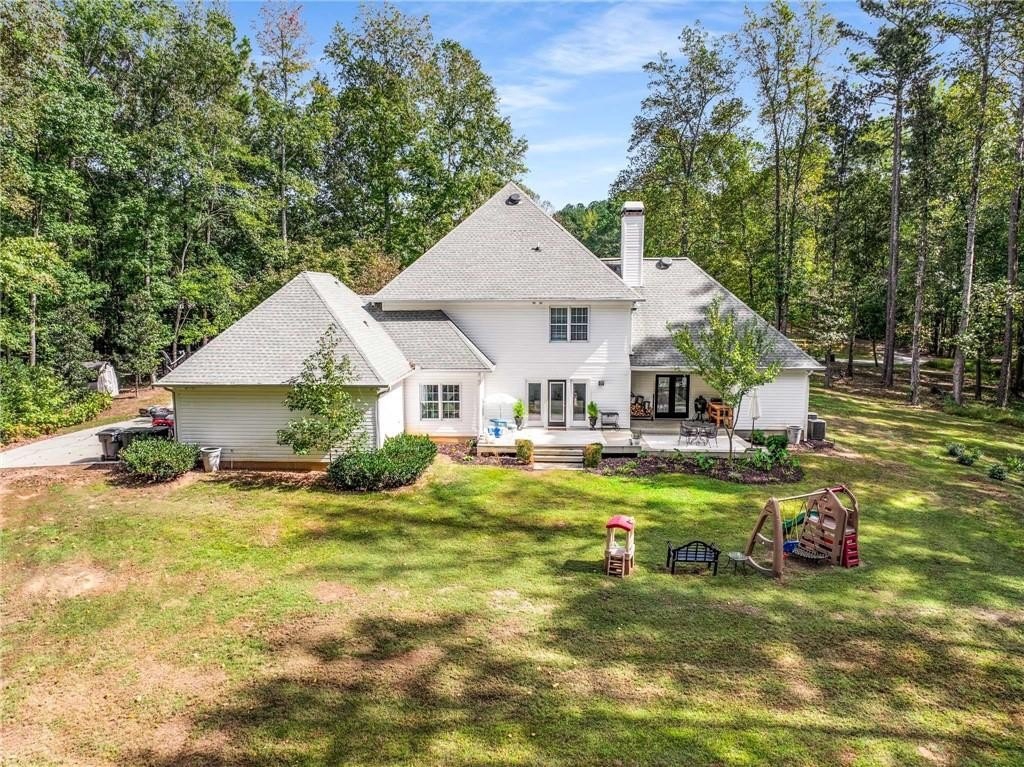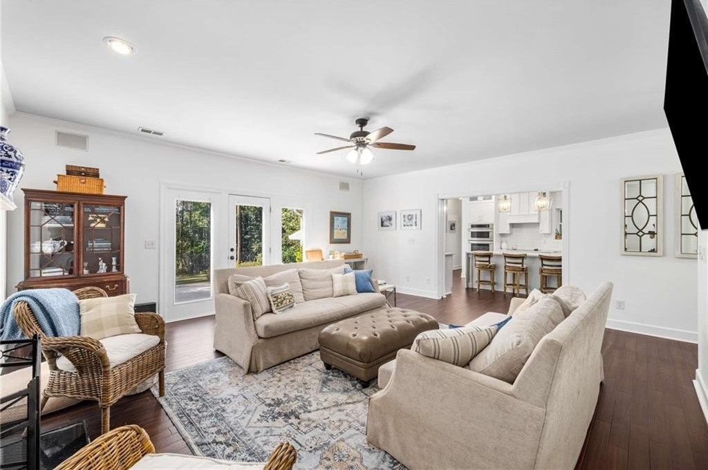 Privately tucked on 4.6 serene, wooded acres, this timeless three-sides brick Colonial blends privacy with polished sophistication and lives like a bespoke estate. A top-to-bottom refresh delivers a truly move-in–ready experience: dark bamboo wood flooring throughout the entire home sets a warm, contemporary tone; a custom-designed staircase railing anchors the entry; and every space has been thoughtfully elevated for daily comfort and effortless entertaining. The completely reimagined kitchen showcases an improved layout with widened openings to the dining and living rooms, including pocket doors for flexible flow. Culinary details impress, cooktop relocated to the back wall with exterior venting, custom cabinetry topped with quartz counters, tile backsplash, and a larger waterfall-edge island with seating. A farmhouse sink with Kingston Brass faucet and a charming breakfast nook with built-in bench complete this magazine-worthy space. Just off the main living areas, the renovated laundry room is both chic and practical—new tile, custom cabinets, quartz countertops with single-slab quartz backsplash, a stainless utility sink, deep enough for dog baths, new faucet, and a built-in dog kennel neatly tucked beneath the cabinetry. The primary suite on the main remains a serene retreat with beautifully refinished cabinetry, granite countertops, soaking tub, dual vanities, and two walk-in closets. Upstairs, smart planning created two full baths where there was once one: a new hall bath with shower/tub combo, fresh tile floors and walls, decorative trim, new vanity and fixtures; and a new private en-suite for the bedroom suite, featuring a stand-up shower, coordinated tile, decorative millwork, vanity, fixtures, and toilet. Secondary bedrooms are generous, and a custom built-in bunk, Twin over Queen, with bookshelf adds function and fun for guests or kids. French doors from the fireside family room open to a large, beautiful deck overlooking a sun-splashed, more open backyard. With coveted zoning for Dowell ES, Smitha MS, and Osborne HS, this residence pairs rare acreage and a quiet setting with curated finishes and modern systems—a luxury escape in the heart of Marietta.