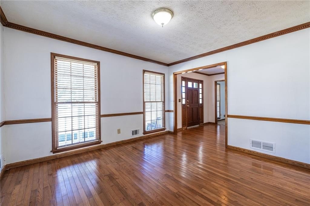 Welcome to 1465 Pounds Road in Lilburn, tucked away in a calm and peaceful place, yet minutes to all the conveniences you expect. Across from Mountain Park Elementary, down the street from Mountain Park Park, and minutes to shopping, restaurants and other services, this location provides it all. You feel as if you’re in the country with the home set on almost a half acre with mature trees and landscaping. Enjoy sweet tea on the expansive front porch, or listen to the birds from the screened patio. Step inside and you’ll discover so much space! This home lives large in the 2,600+ square feet it offers. Downstairs provides lots of living space with the formal living and dining rooms, a large family room and a breakfast room in the kitchen. The kitchen has newer cabinets, countertops and appliances. Head upstairs and you’ll find all five bedrooms, including one which is the size of the garage. So many ideas for how to use this space!