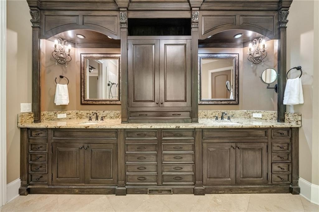 The main-level primary suite is a quiet retreat with fireplace, dual vanities, expansive custom closet, and a soaking tub. Upstairs, each secondary bedroom features an en-suite bath, offering privacy and comfort for guests and family members.