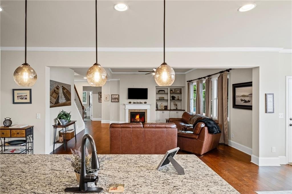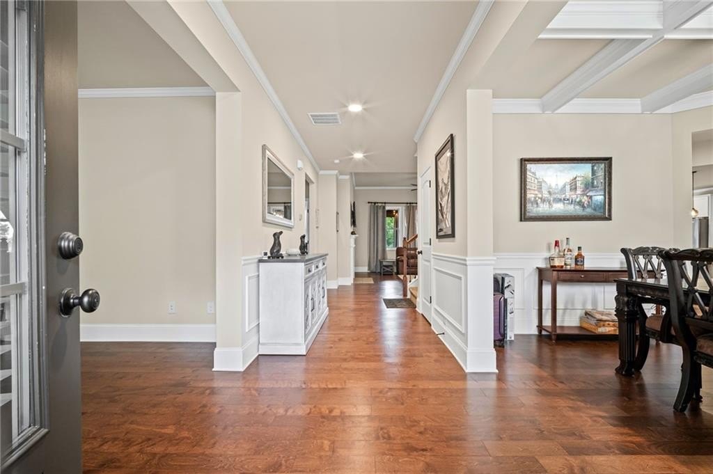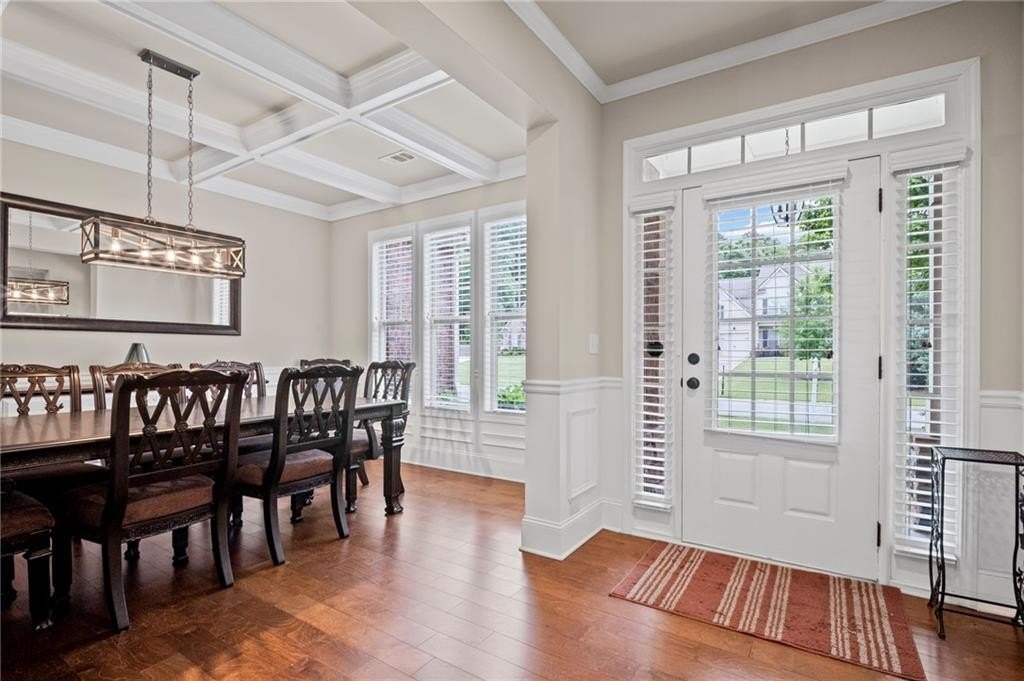 Step inside to discover an interior filled with thoughtful touches, from the formal dining room with coffered ceiling to the flexible front room, perfect for a home office, playroom, or creative space.