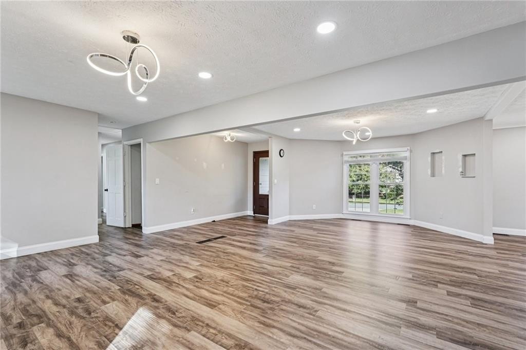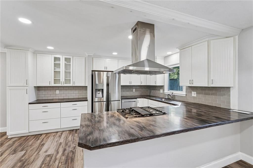 Welcome home to your newly remodeled brick ranch in the heart of East Cobb with a partially finished basement and completely renovated kitchen and bathrooms with NO HOA! This beautiful home is situated on a large, private, fenced yard. Windows are brand new. This ranch remodel invites you into a modern and open great room that includes a living room, dining room, breakfast room, and all white kitchen with plenty of natural light. The kitchen features stainless steel appliances, white cabinetry, free-standing stainless steel range hood, and overlooks the living area. The dining room features modern new lighting fixtures and a low-profile gas fireplace. New luxury vinyl plank flooring throughout most of the main floor. The three bedrooms and two renovated bathrooms complete the main floor with Bluetooth speakers, you can connect to your phone or listening to music while you taking bath. The lower level provides an additional 500 sq ft of finished space and the opportunity to entertain in your game room or privacy for your office. The driveway and garage doors are only a few years old. The spacious, level and fenced backyard is waiting for you to entertain guests or to just relax. Investor friendly. Close to top rated schools. Convenient to Roswell and Marietta. Minutes to I-75, I-575. Shopping, restaurants and KSU.