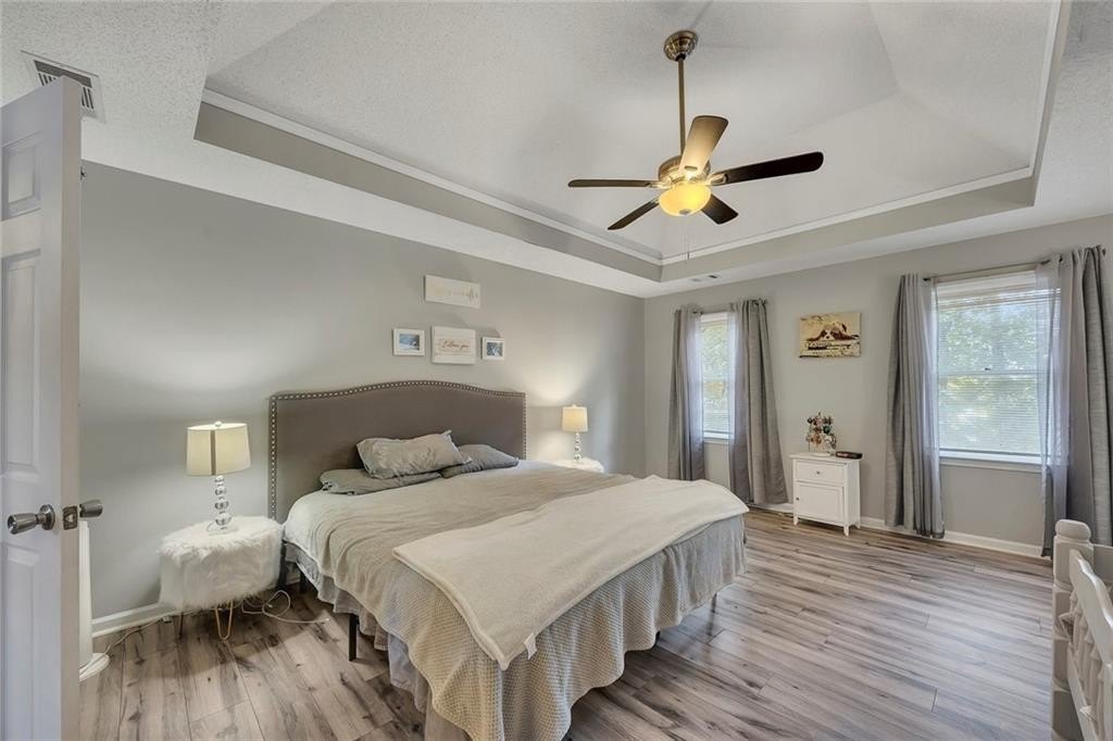 Welcome to this beautifully updated home nestled in a well-established neighborhood with no HOA! This home has all the extras you have been looking for, including two brand new AC units and a furnace installed in 2022, quartz countertops, LVP flooring on the second floor and laminate throughout the rest of the house! Step into the bright and inviting kitchen equipped with a large island, brand new stainless steel appliances, gas stove with double oven, ample cabinet space, and a spacious pantry! The living room boasts high vaulted ceilings and expansive windows that flood the space with natural light, creating a bright and open atmosphere-perfect for entertaining! Upstairs, you will find two generously sized bedrooms, a huge master suite - complete with trey ceiling and a cozy corner ideal for an office or reading nook. Primary bathroom has double vanities, his and hers closet, walk-in shower and huge soaking tub. Step outside and enjoy the serenity of your fully fenced-in backyard, surrounded by trees from the comfort of you the spacious deck, complete with built-in seating! If that's not enough, the basement offers an additional 800 square feet, including an extra bedroom, full bath, storage space, and a kitchenette-perfect for guests, extended family or rental potential! Not to mention, you are minutes away from shopping and dining-Costco, Sam's Club, the Avenue and much more!