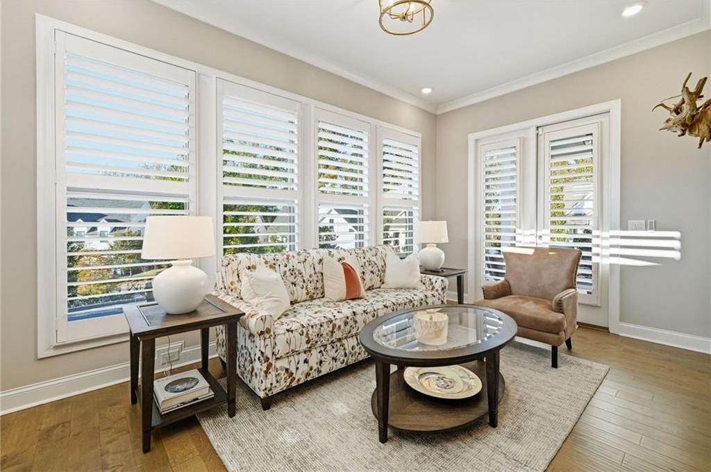 • Plantation shutters and designer lighting