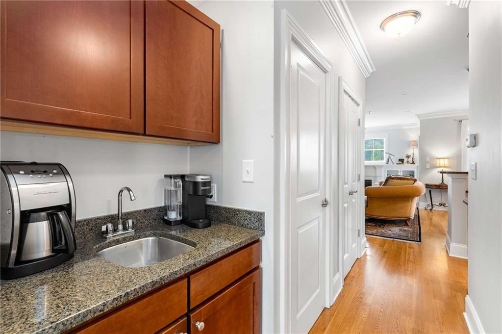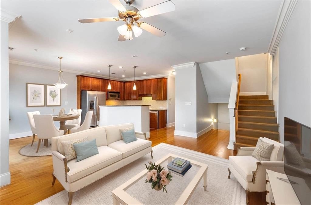 Fabulous renovation in the perfect location!! Ideally situated in a highly sought-after neighborhood of Sandy Springs, this home offers easy access to shops, restaurants, parks, City Springs and Performing Arts Center and major commuter routes—everything you need is right at your doorstep. Step inside to find a bright, open layout with fresh finishes, high ceilings and gleaming hardwood floors throughout. The updated kitchen has custom cabinets, granite countertops, large pantry and a separate bar with a second sink. Spacious fireside living and dining areas flow seamlessly to a private balcony with beautiful views—ideal for relaxing or hosting friends. Main floor boasts an additional spacious second living space perfect for an office and additional sitting area. Upstairs, you’ll find a generously sized serene primary suite with a large renovated private bath and walk in closet. Two additional bedrooms with large windows overlooking the trees with a shared updated bath. Additional highlights is a spacious one car garage with a second driveway parking space. The community is beautifully landscaped with nice shared spaces and plenty of guest parking. With its prime location, thoughtful updates, and inviting atmosphere, this townhouse is a rare find you won’t want to miss.