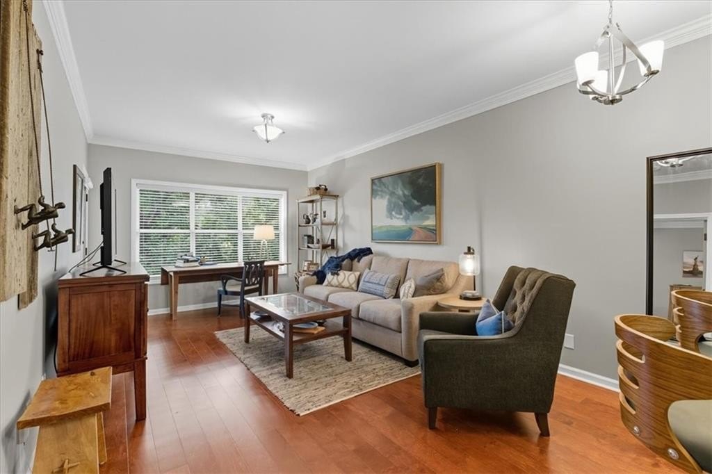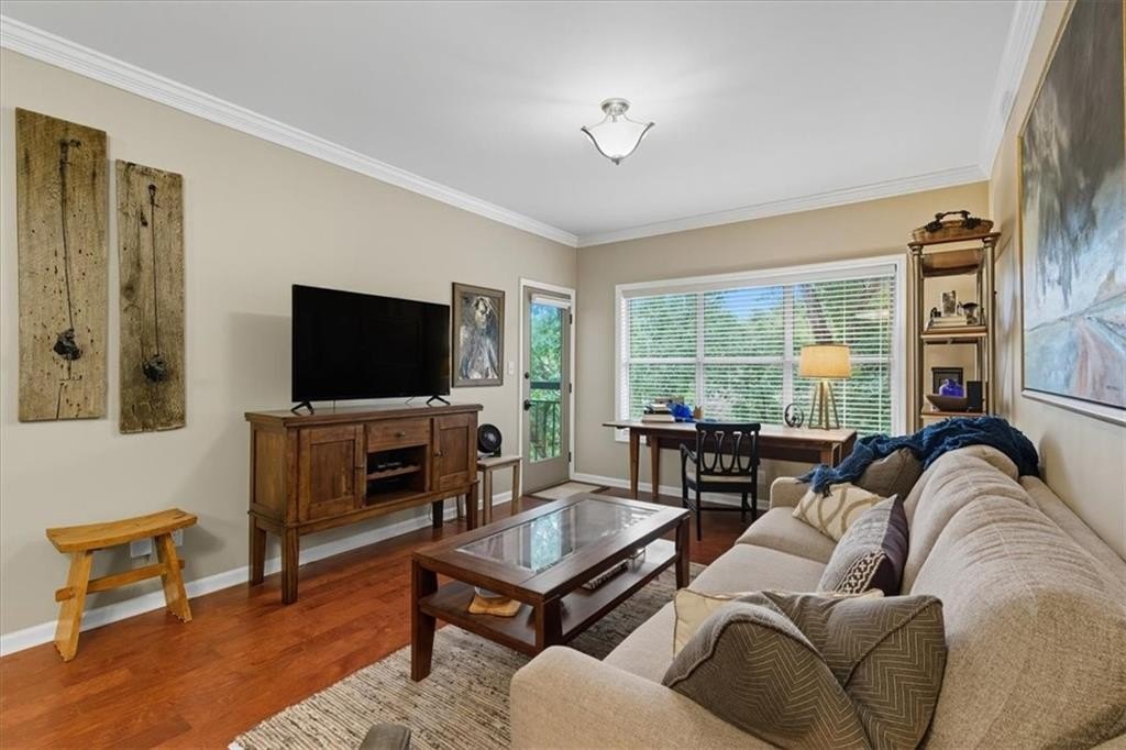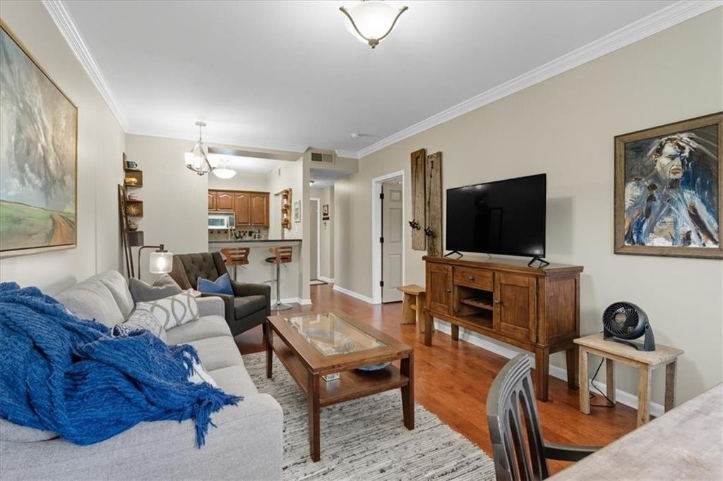 The owner states that the property is to be sold with all furniture included, contingent upon an ACCEPTED OFFER! Nestled in a peaceful, gated community, this one-bedroom condo combines comfort with convenience. Located less than half a mile from the Paces Mill entrance to the Chattahoochee River, this popular area provides quick access to Buckhead, Vinings, and The Battery/Truist Park. The open-concept living and dining area, with hardwood floors throughout, is ideal for relaxing or entertaining. The kitchen features stainless steel appliances, granite countertops, and ample cabinet space. The cozy bedroom offers a restful retreat and includes a walk-in closet. The bathroom features a whirlpool tub/shower combo, as well as tile flooring. Washer & Dryer hookups in the unit. Outside, enjoy well-kept grounds, two swimming pools, a clubhouse, grills, and a dog park. Additional amenities include an assigned covered parking spot (ML 125), a fitness center, and convenient shopping nearby. This unit also offers a large storage unit on the same floor as the condo. Parking is on the same level as the workout room. With the right offer, the seller is willing to include furniture and furnishings (excluding artwork). Call today to schedule your appointment!