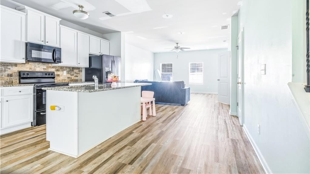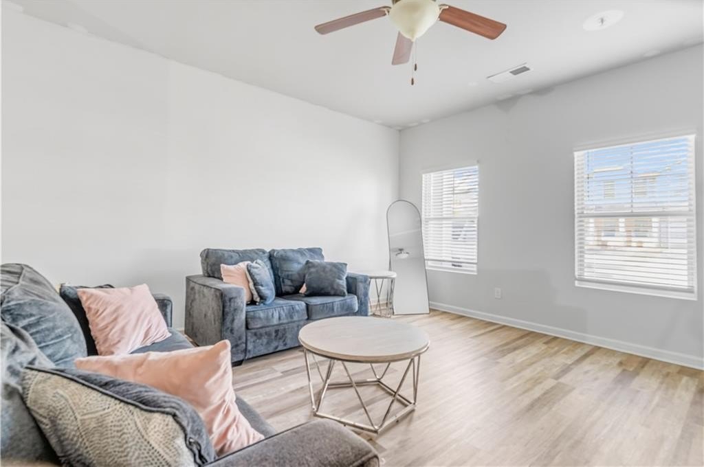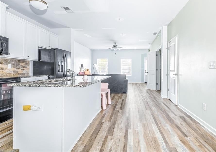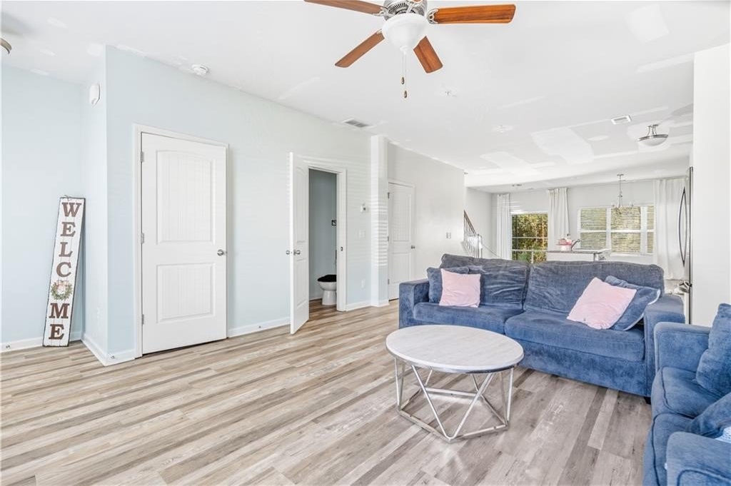 Welcome home to this beautiful and spacious townhome, featuring one of the largest floor plans in the community! Enjoy gleaming hardwood floors on the main level, a bright open-concept layout, and a stunning kitchen with granite countertops and modern finishes. The cozy family room and dining area flow seamlessly together, ideal for entertaining or relaxing. Upstairs offers a spacious primary suite with a walk-in closet and tub/shower combo, two additional bedrooms, and a convenient laundry room. Minutes to Hartsfield-Jackson Atlanta International Airport, restaurants, nightlife, and shopping. No rental restrictions, great for investors or owner-occupants.