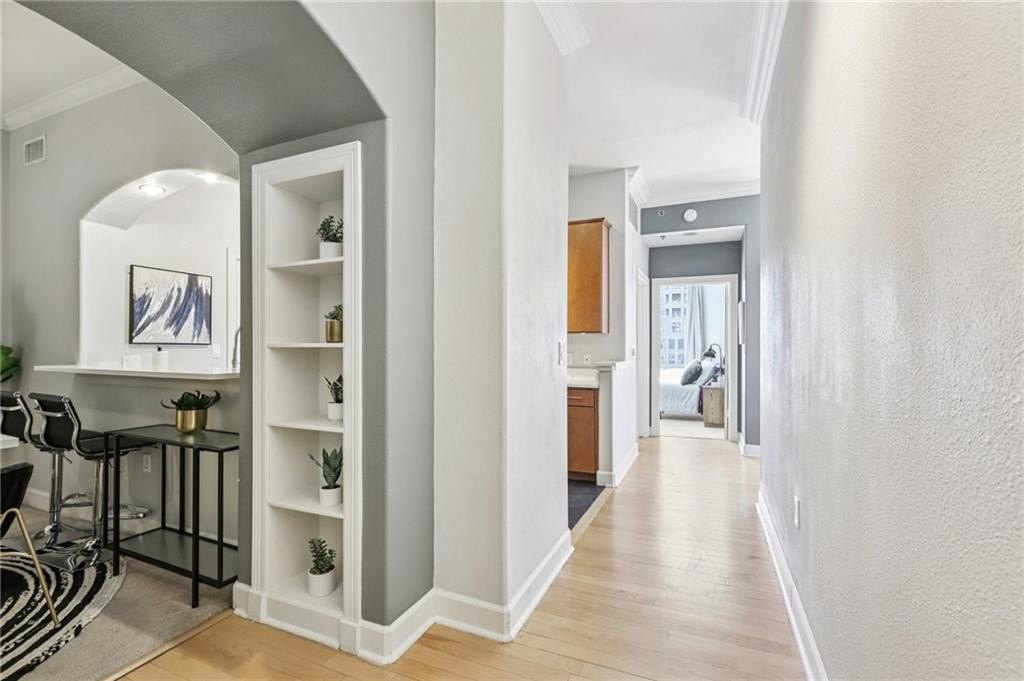 PREMIER LUXURY HI-RISE IN BUCKHEAD! Experience luxury living at The Paramount, one of the most sought-after addresses in Atlanta. Enjoy the breathtaking city and sunset views from the 21st floor. This unit offers a spacious one-bedroom, one-bathroom layout, with an additional room providing the flexibility to be used as a separate dining room, den, or office – perfect for working from home or creating a cozy space to unwind. As you enter, beautiful hardwood floors and large picture windows create a warm and inviting ambiance. The spacious open living/dining area, with motorized shades, is flooded with natural light and has access to the oversized private balcony, ideal for both entertaining and relaxation Enjoy cooking your favorites meals in the modern galley kitchen boasting sleek quartz countertops, ample cabinetry, built in wine rack and stainless steel appliances. The generously sized primary bedroom offers both comfort and privacy, with a walk-in closet for ample storage. The adjacent spacious bathroom features double vanities, a large soaking tub with shower quartz countertops and tile floors. The dedicated laundry area is roomy and adds additional storage space. This unit also includes one assigned closed garage with plenty of room for storage. The Paramount at Buckhead offers exceptional amenities including a 24/7 concierge, guest parking, large pool with towel service, cabanas, tennis court, indoor and outdoor theaters, grilling area, fire pit, fitness center, complimentary coffee bar, wine lockers, business center and more! Located in the heart of the Buckhead financial center, with it is easy access to upscale restaurants, Phiipps Plaza and just steps to MARTA, Peachtree Road and more. It is a prime location, with direct access to Highway 400 via private access through Alliance Center to avoid multiple traffic lights. Enjoy the ideal combination of luxury, convenience, and location at The Paramount. Don’t miss out on the opportunity to make this your next home!