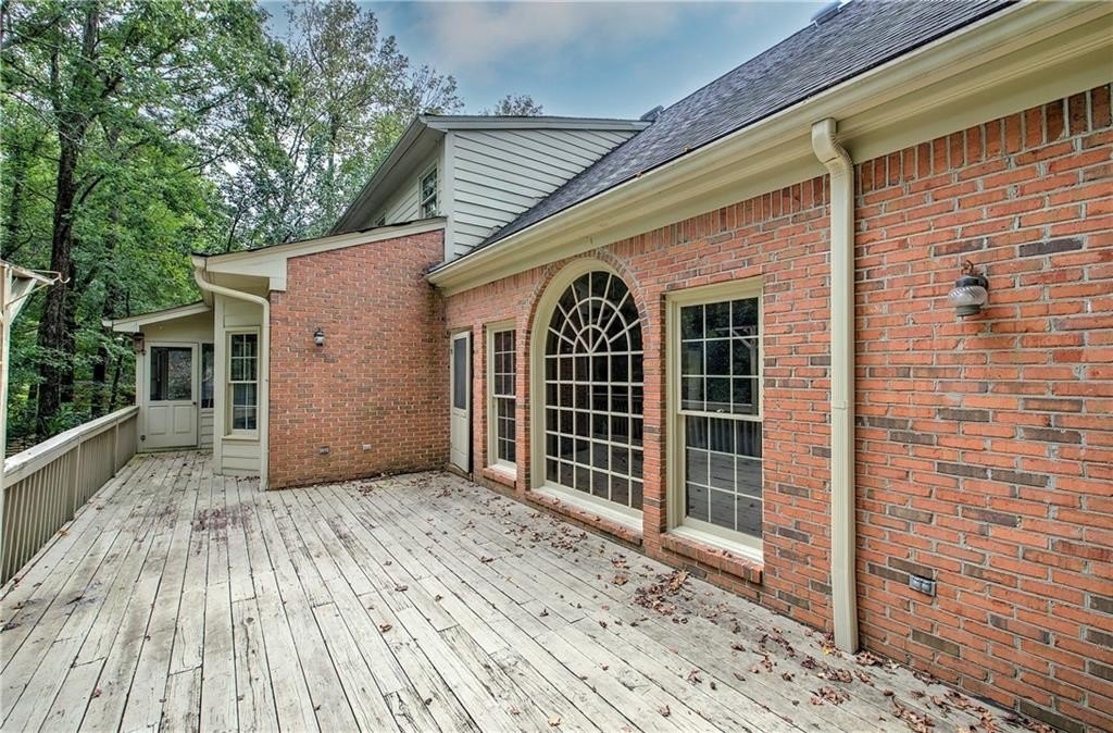 Estate Sale, sold as is, no discloser as sellers have not lived in the home. The water is off as no one lives in the home. Custom Brick Williamsburg Design, large 5' arched masonry fireplace in the family room with masonry wood storage, false masonry fireplace in the living room, masonry fireplace in the basement, large deck 547sf and large patio 862sf, sun porch 258sf, wooded back yard, extra-large open parking, large rooms, living room 13.9 x 17.7, dining room 14 x 17.6, family room 20.4 x 21.3, breakfast area 14 x 13.6, primary bedroom 19.8 s 18.2, bedrooms, 12.9 x 19.8, 14 x 15.3, 11.6 x 15.3, basement rec rooms 13.1 x 30.4, 22.1 x 23.1, basement bedroom 18.1 x 19.7, full bath in the basement, flex room upstairs that could be a 5th bedroom 12 x 14, stairs to floored attic storage, garage 21.1 x31. Must see, home is much larger than appears from street. This is wonderful East Cobb location in quiet, beautiful neighborhood.