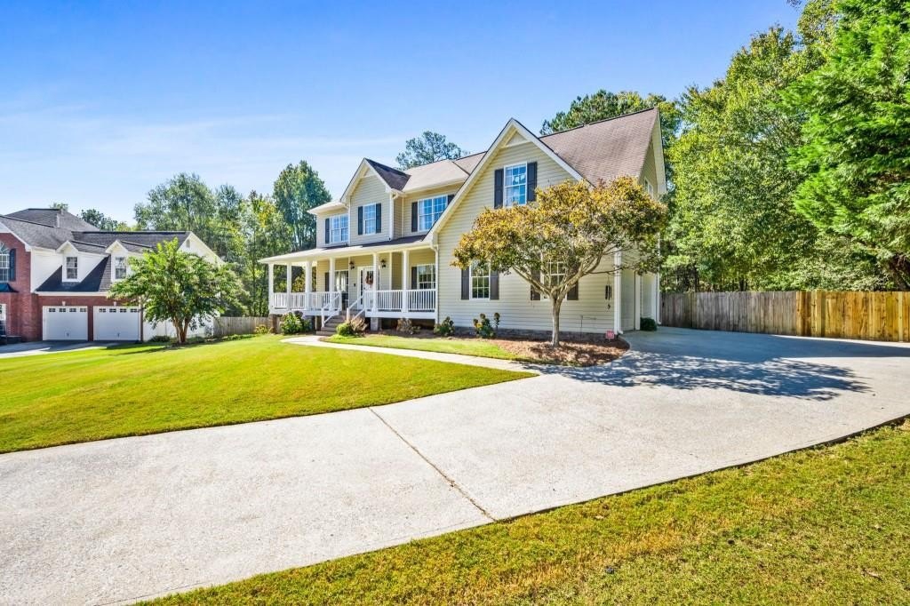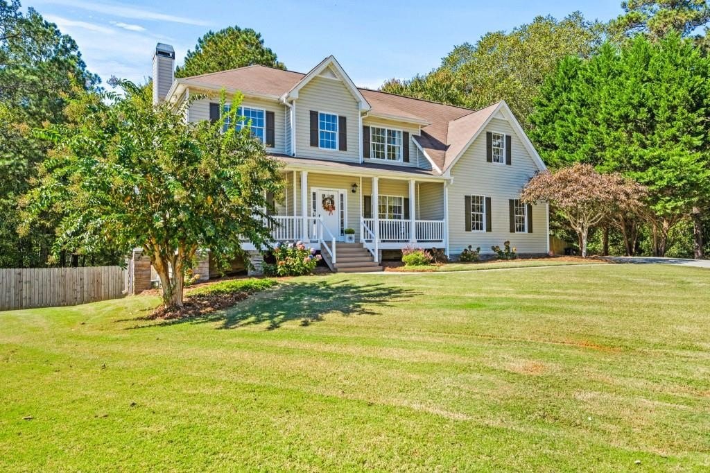 Don't miss this amazing value in highly desirable Senators Ridge, an established neighborhood offering larger lots and impressive amenities. This lovely home is situated on an oversized, one-acre, cul-de-sac lot walkable to all the amenities of this prestigious community. Incredible opportunity to make memories in this one owner 4 BR/2.5 BA Traditional home. The main level features an oversized fireside family room, powder room, a generous sized formal dining centralized around a kitchen you are going to fall in love with! The updated eat-in kitchen features white cabinets/quartz countertops and tiled back splash. Upstairs you will find a large owners suite with (sitting area or office space) with ensuite spa bath, along with 3 secondary bedrooms (one oversized with two closet spaces), a full bath and laundry room. The exterior of the home features a rocking chair front porch and low maintenance vinyl siding and a large back deck. The fenced back yard is a delight for the fur babies, cook outs, game nights, and offers so much privacy! A full unfinished basement with a boat door awaits all your storage and future expansion needs! This delightful neighborhood includes resort style amenities including a clubhouse, family pool with waterslide & kiddie pool, a quite pool with a covered pavilion, tennis courts, pickle ball, playground and basketball courts. This great location features a country setting but is only minutes from the highly rated North Paulding schools complex, restaurants and shopping. Enjoy convenience to Acworth, Cartersville, and major commuter routes including Hwy 41, I-75.