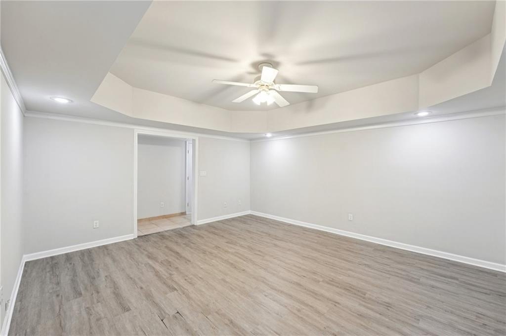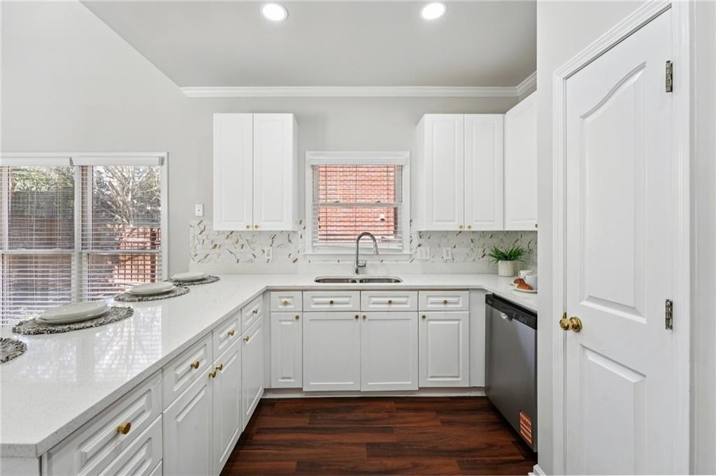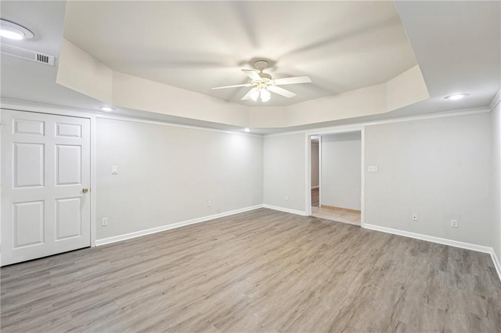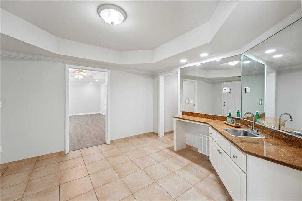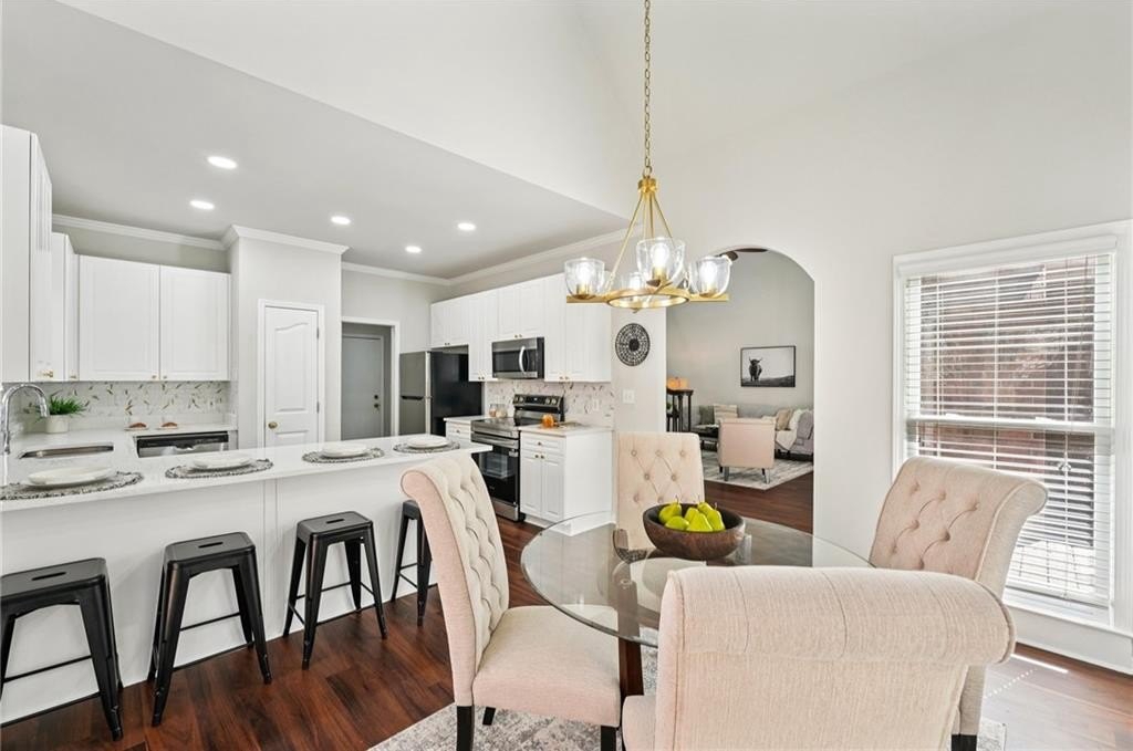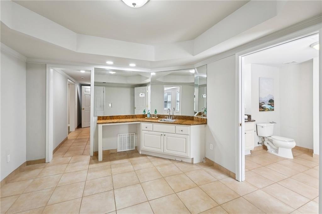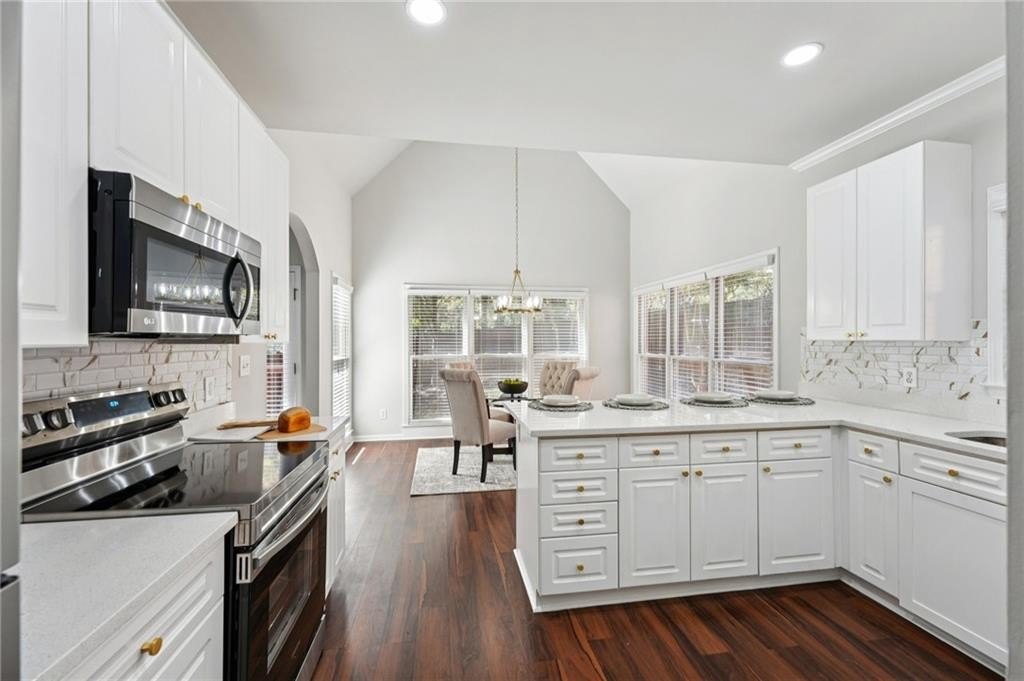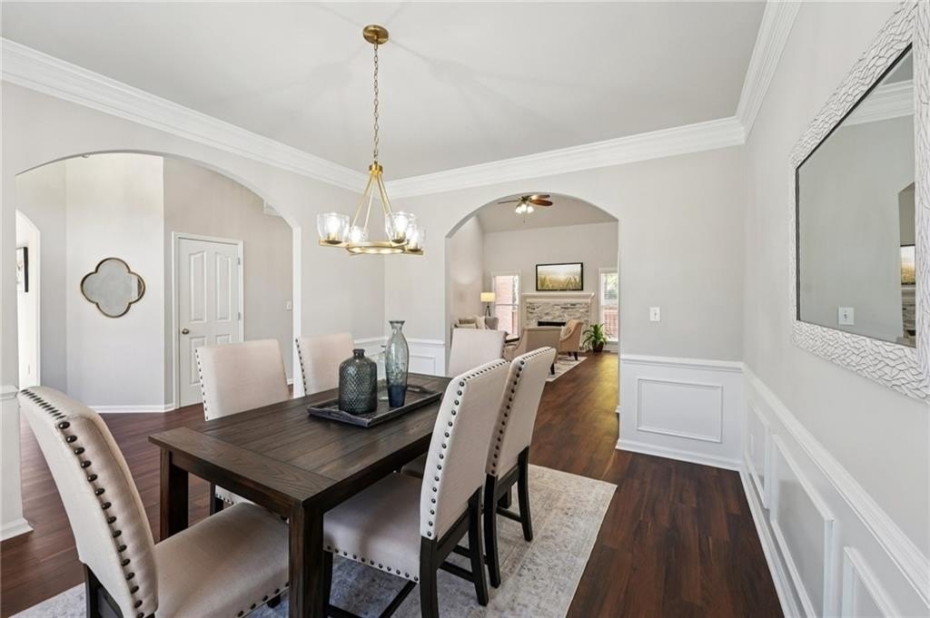 Welcome Home! Experience refined living in this stunning north-east facing, four sided brick, master on main, finished basement home perfectly situated on a quiet cul-de-sac lot, perfectly nestled in the highly sought-after Vicarage Walk community. This expansive residence combines elegant design, freshly painted, and thoughtfully crafted indoor and outdoor spaces all in an unbeatable location with top-tier Fulton county school district. As you enter the home, you are welcomed by a breathtaking two-story foyer. On your right is a formal dining room with custom trim and designer finishes; to your left, a spacious executive office. The heart of the home is the light-filled great room with soaring high ceilings, a newly upgraded dramatic stone fireplace. The chef's kitchen is a dream: updated with sleek white stone countertops, a newly replaced backsplash, a brand new range, stainless steel appliances, An informal dining area with high ceiling surrounded by windows perfect for sunlight throughout the day, this space ideal for both morning and evening entertaining. Also on the main level is a beautifully appointed master suite with an oversized bathroom with double vanity and closet. Newly upgraded overlooking stairs will lead you on the second level, you'll find three more spacious bedrooms, and the two ways open pathways to go to the unfinished storeroom. As soon as you go downstairs, a fully finished basement is waiting for you to create your own billiards/game area, home gym and theater. The basement has a bedroom and full bathroom. Freshly painted and new epoxy installed two car garage. Out back, enjoy your private outdoor oasis with oversize deck, matured trees and professionally landscaped yard ideal for year-round gatherings.