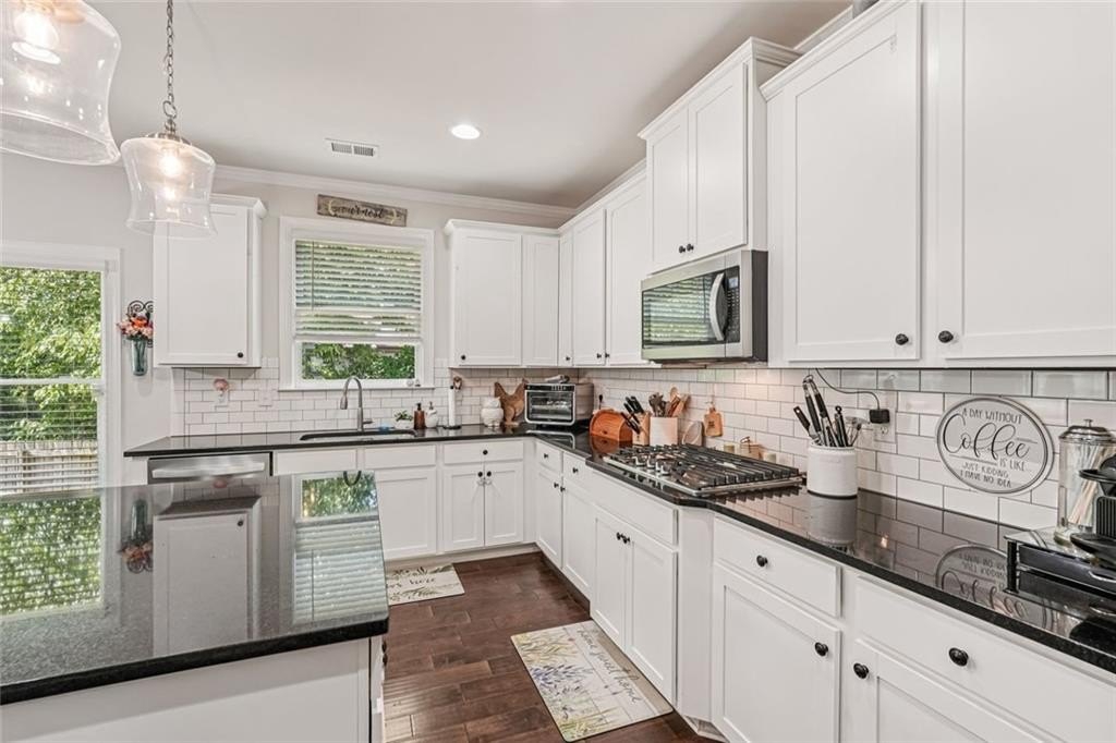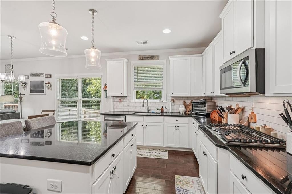 Fantastic Opportunity to Live in the Sought After Hawkins Place Subdivision. This 5BR/3.5 Bath Home is well Appointed with Numerous Upgrades, Bonus Room, Large Fenced Backyard, Covered Patio for Relaxing, Oversized Deck for Entertaining and Sits on a Private Culdesac Lot! This Bright Open Floorplan Has Gorgeous Wide Plank Hardwood Floors Throughout Main. Chef's Kitchen w/Custom White Cabinets, Granite Countertops, Tiled Backsplash, All Stainless Steel Appliances, Built-in Microwave, Dual Ovens, Separate Gas Cooktop, Island, Breakfast Bar, Pendant Lighting, Walk-in Pantry and Breakfast Area w/Chandelier. Dining Room w/Tray Ceiling, Wainscoting, Chandelier and Butler's Pantry. Separate Den/Office Area on Main w/Crown Molding. Family Room with Custom Fireplace, Ceiling Fan and Wonderful Backyard Views. Covered Patio is Perfect for Reading and Relaxing or Entertain on the Oversized Deck Overlooking the Private Fenced Backyard. Large Master Suite Has Tray Ceiling and Fan. Master Spa Has Gorgeous Tiled Floor, Custom Dual Vanity w/Quartz Countertops, Custom Fixtures, Oversized Garden Tub, Subway Tiled Shower and Huge Walk-in Master Closet. Huge Bonus Room Up Makes a Wonderful Rec/Media Room or Potential 5th Bedroom! 3 Spacious Secondary Bedrooms Up, One w/Private Bath and Two Others That Share a Jack-n-Jill! This Home Has Lots of Character and Curbside Appeal! Buyer will Receive a $3,500 Lender Credit with preferred lender JT Trial-Certainty Home Lending