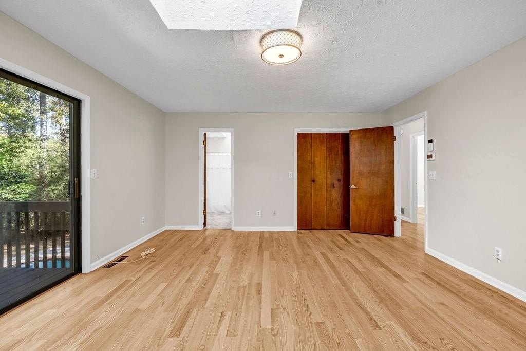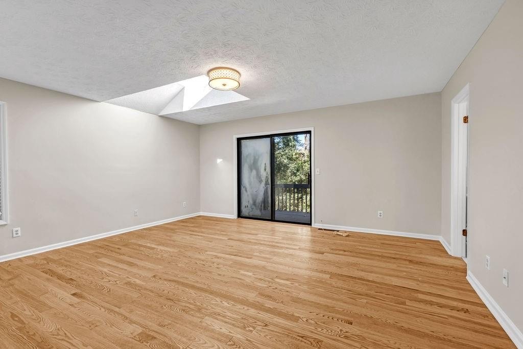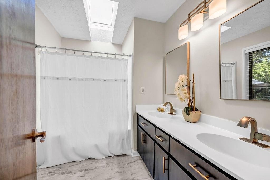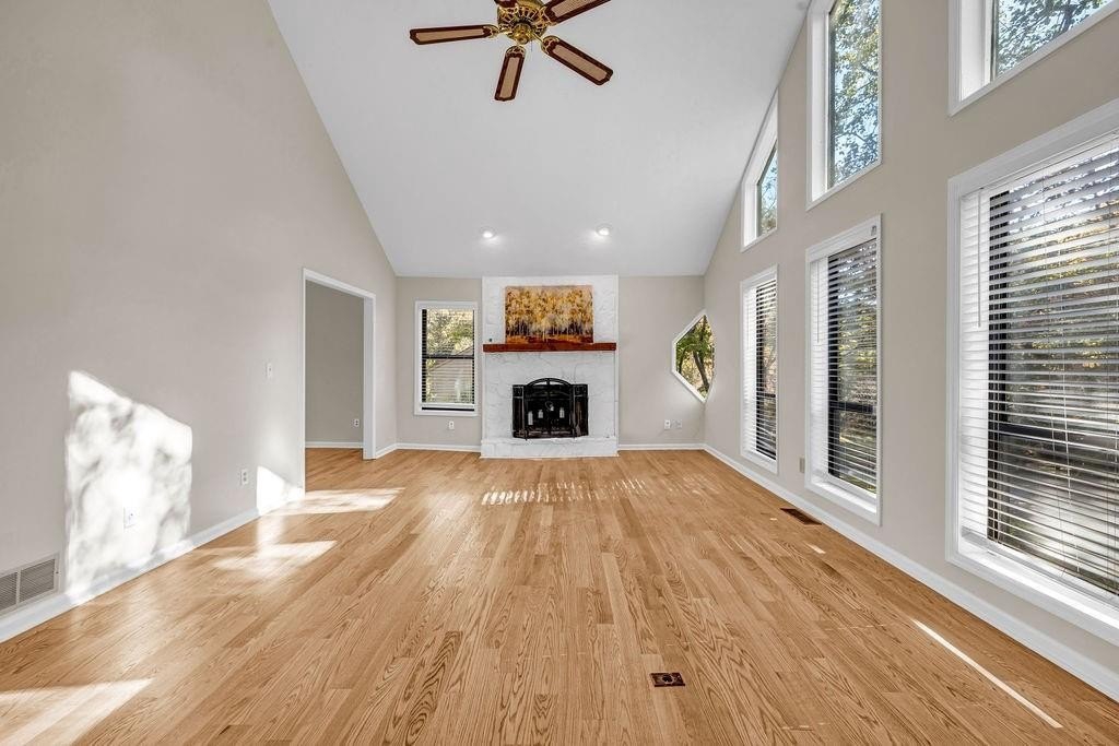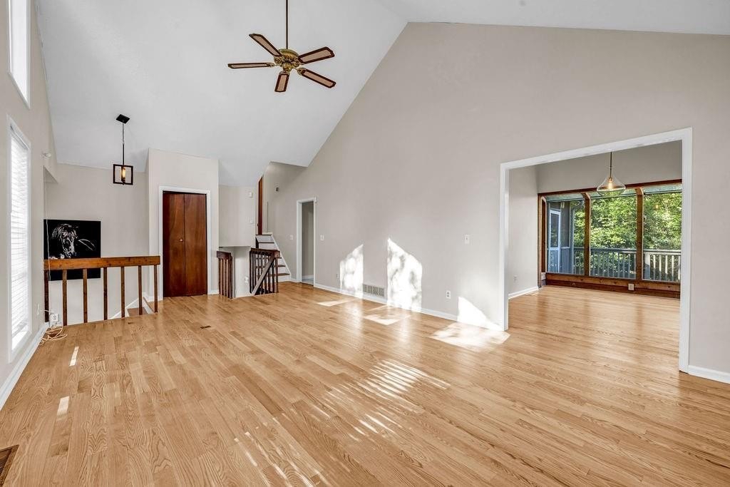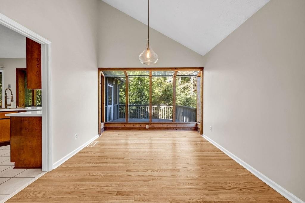 Featuring a sparkling pool and spacious three-car garage, this charming home is tucked away in the sought-after Landings East community, known for its welcoming atmosphere and convenient location near Stone Mountain Park. Step inside to a bright two-story foyer with gleaming hardwood floors that open to a cozy living room with vaulted ceilings and a warm gas fireplace, perfect for family movie nights or gatherings with friends. The adjoining dining room overlooks the living area, creating an inviting space for meals and celebrations. The kitchen features Corian countertops, bar seating, and a sunny breakfast nook where everyone can enjoy casual mornings together. From the kitchen, step into the screened-in porch that overlooks the sparkling backyard pool, a peaceful retreat for relaxing or watching the kids play. The fenced backyard provides ample space for children or pets to run and play safely. Upstairs, you’ll find three comfortable bedrooms and two full bathrooms, including a spacious primary suite with dual vanities, a garden tub, separate shower, and beautiful skylights that fill the room with natural light. Step out onto your private balcony to enjoy a quiet morning coffee while overlooking the pool. The finished basement offers the perfect space for entertaining or hosting guests, complete with a bar area, additional bedroom and full bath, and a large laundry room. The three-car drive-under garage provides abundant storage for vehicles, bikes, and more. Lovingly maintained and move-in ready, this home offers the ideal blend of comfort, style, and outdoor enjoyment, a wonderful place for your family to make lasting memories.
