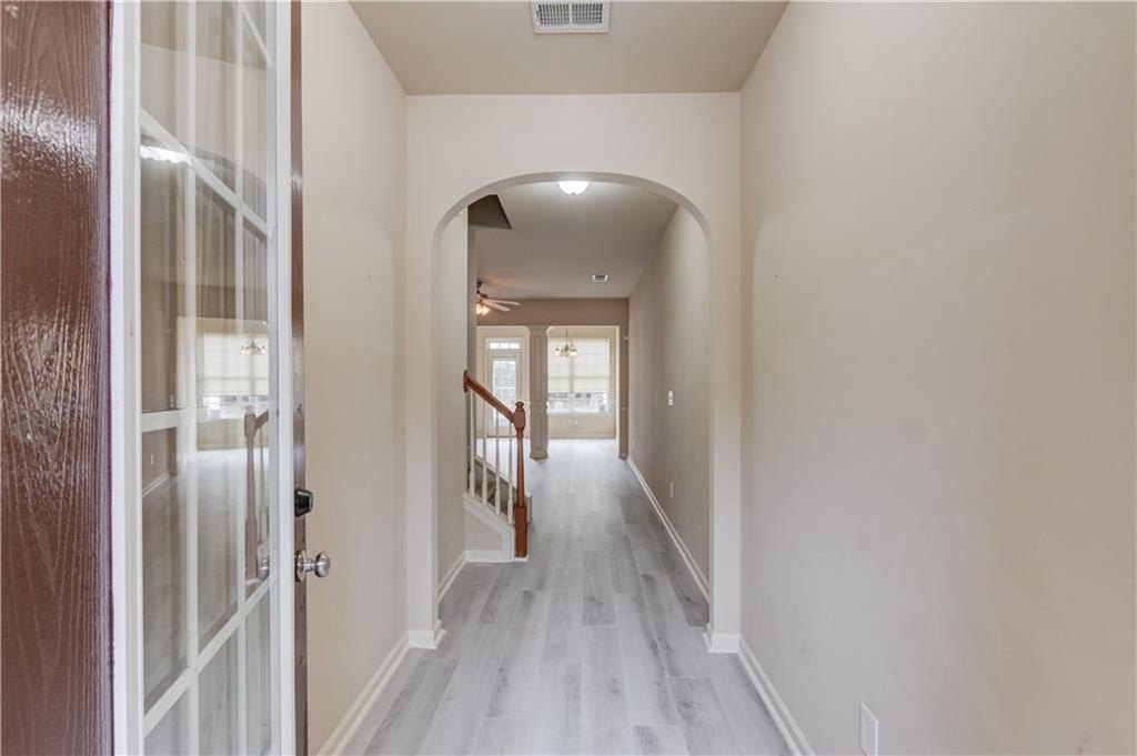 Located in the heart of Hamilton Mill and the highly sought after Seckinger High School district, this charming three bedroom low maintenance townhome is in the center of everything! The main level features a spacious fireside living room that opens to the eat-in kitchen with island with brand new LVP flooring and paint. Upstairs you will find a spacious primarty bedroom. The ensuite bathroom makes mornings easier with its double vanity, soaking tub for winding down, and separate shower. Two additional bedrooms share a second full bathroom, and the nearby upstairs laundry adds extra convenience to your daily routine. The versatile loft area offers endless possibilities, making it the perfect spot for a second living space, a playroom, or a functional home office tailored to your needs.