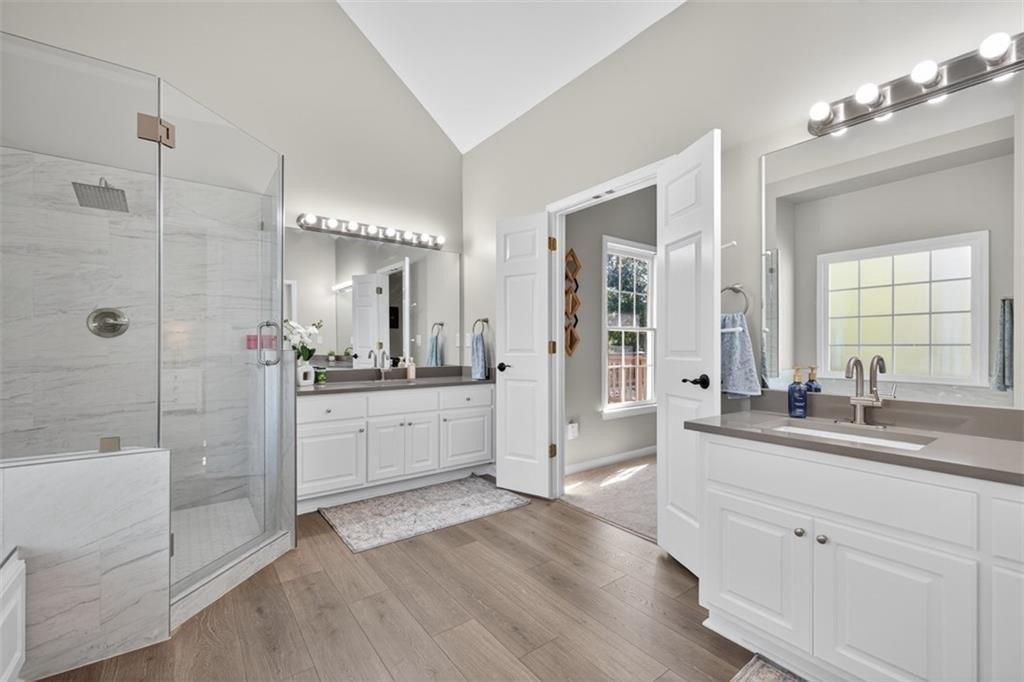 Coming Soon in Lawrenceville! Welcome home to this better-than-new 5-bedroom, 3.5-bath residence spanning over 4,200 square feet of beautifully designed living space. Every detail has been thoughtfully updated — Brand new roof, siding, gutters, fairly new windows (front and basement), deck, flooring, and freshly painted interiors and exterior, and kitchen cabinetry. The main-level HVAC system is brand new (replaced 2025), while the lower-level system is only 2-3 years old, offering peace of mind. The fully finished basement is an entertainers dream — featuring two spacious bedrooms, a full bath, a private office, a dedicated gym room with private side entrance. Step outside through the basement walk-out to an expansive concrete patio, perfect for entertaining, barbecues, or relaxing evenings outdoors. Upstairs, the primary suite is a true retreat featuring tray ceilings, a recently renovated spa-inspired bathroom complete with frameless glass shower, beautiful upgraded tile, quartz countertops, double vanities, a soaking tub and large walk-in closet. The secondary bedrooms are spacious with natural light and new carpet. Outside, the extended deck overlooks a lush backyard lined with fruit trees (persimmon, cherry, plum, fig, peaches) and other gorgeous perennial plants, complete with a storage shed for more space to hold your items. Ideally located just 3 miles from downtown Lawrenceville and minutes from The Exchange at Gwinnett and the Mall of Georgia. Close to the best dining, shopping, and entertainment the area has to offer. Come experience a home that truly feels better than brand new. Owner/Agent. More pics to come!