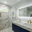 The spacious primary suite offers a serene retreat, complete with a luxurious ensuite bath featuring a large walk-in marble shower, dual vanities, elegant lighted mirrors, and upgraded fixtures.