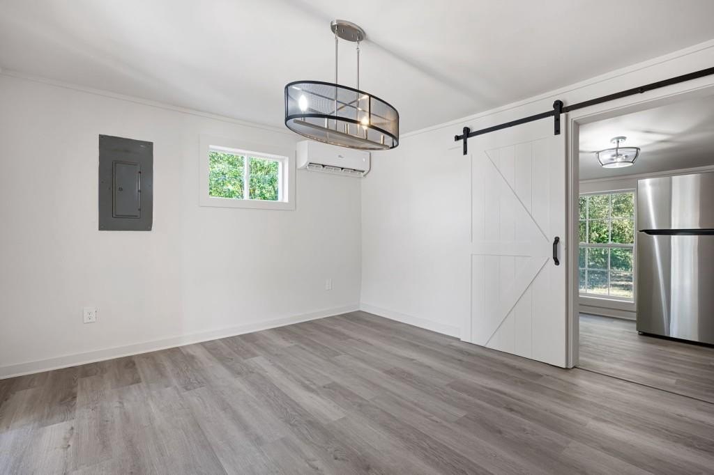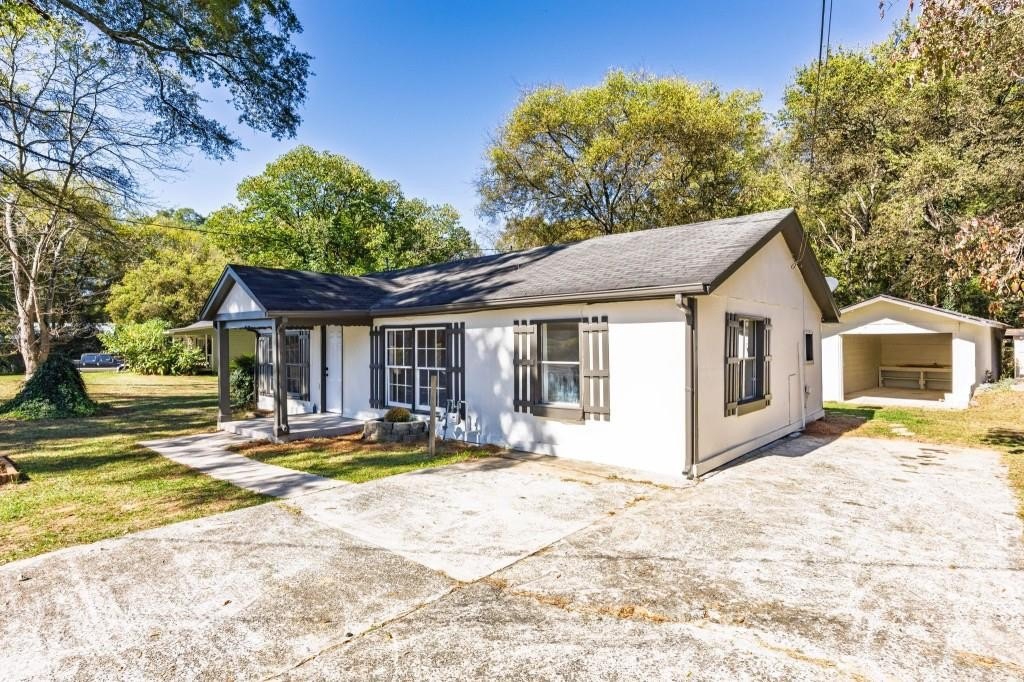 Adorable ranch bungalow less than 4 miles from Downtown Cartersville! This 3 bedroom, 1 bath home has been completely renovated inside and out. Step onto the welcoming covered front porch and into a bright family room that opens to the dining area and updated kitchen featuring white cabinetry, stainless steel appliances, and modern finishes. Enjoy new flooring, light fixtures, windows, electrical, barn doors and more throughout! The home also offers a flex room, separate laundry room, detached single garage perfect for storage or a workshop, and an additional shed for extra space. Conveniently located near I-75, Red Top Mountain, Tellus Science Museum, and all the restaurants and shops of downtown Cartersville. Move-in ready and full of charm, this one is a must see!
