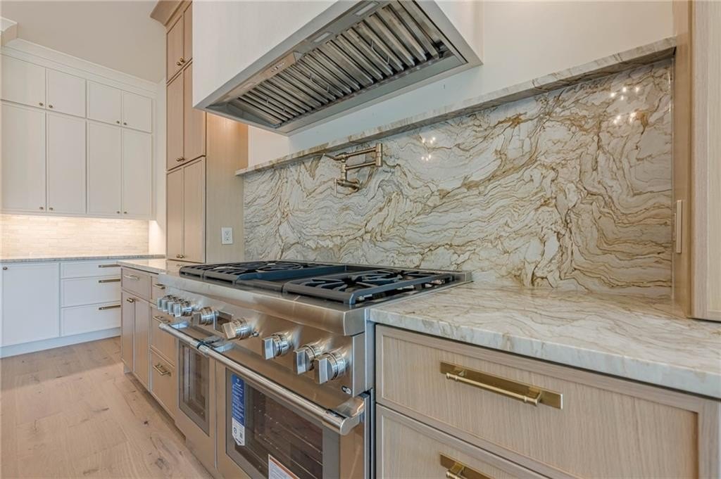 An incredible new price creates an exceptional opportunity to own this custom-built estate in a premier Canton location on 2+ acres! Dramatic custom glass entry doors open to a show-stopping three-level staircase, 7” wide-plank white oak floors, and soaring vaulted ceilings. The heart of the home features a limestone fireplace and seamless indoor-outdoor living, with 12' accordion doors that open to expansive beamed porches overlooking the private estate. The chef’s kitchen includes Thermador appliances, custom cabinetry, stunning oversized quartzite waterfall island with seating, a mix of natural wood tones, and Brizo Litze fixtures. A separate scullery features an arched entryway, showcasing Bardiglio and Carrara marble checkered floors, café-style drawer dishwasher, black fireclay farmhouse sink, and designer hardware. The custom details like the reeded Calacatta Viola marble floating 54" sink basin and designer lighting add luxurious sophistication to the adjacent bath. The main-floor owner’s suite impresses with a beamed ceiling, private veranda, and a spa-worthy bath featuring heated herringbone marble floors, a zero-entry shower, and stunning vanities. Upstairs, four spacious en-suite bedrooms offer comfort and style, while the terrace level is designed for entertaining with a sleek micro-shaker bar, media space, and access to a flat, POOL READY backyard. Bevolo gas lanterns, custom corbels, and Pella Aluminum Clad Casement windows lend timeless character to the exterior. With high-performance windows, foam insulation, a Ruud HVAC system, and smart prewiring throughout, this home blends modern technology with enduring craftsmanship—just minutes from Milton and downtown Alpharetta, with the added benefit of Cherokee County taxes. Preferred Lender offering a $6K credit to be applied toward closing costs, prepaid items, or an interest rate buydown, subject to approval.
