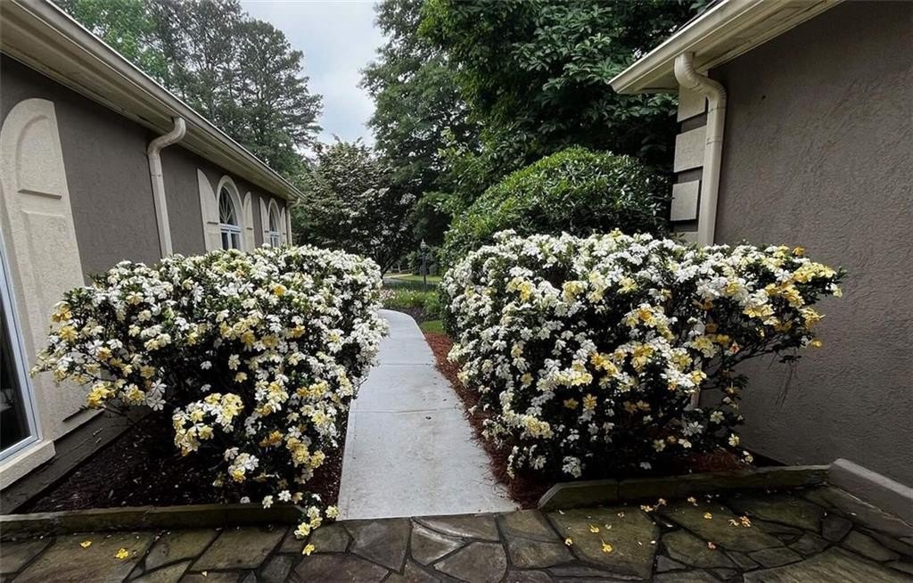 This pristine Contemporary European Ranch blends French Provincial elegance with Mediterranean warmth and offers an incredible opportunity to enjoy country-club living at an exceptional value. Set on a beautifully landscaped half-acre lot surrounded by year-round flowering gardens, the home features a stucco exterior, low-pitched roofline, and symmetrical design that create timeless curb appeal. A private secondary driveway offers convenient access or extra parking for a boat.