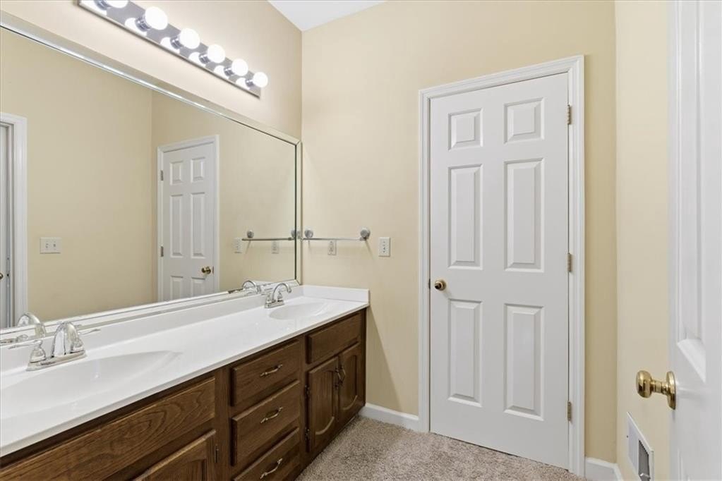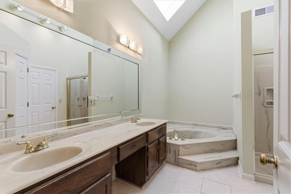 Every detail reflects thoughtful craftsmanship, from the refined trim work and wainscoting to the carefully designed floor plan. The spacious primary suite offers double vanities, a soaking tub, and a separate shower, while two secondary bedrooms share a charming Jack-and-Jill full bathroom. A convenient half bath provides extra comfort for guests.