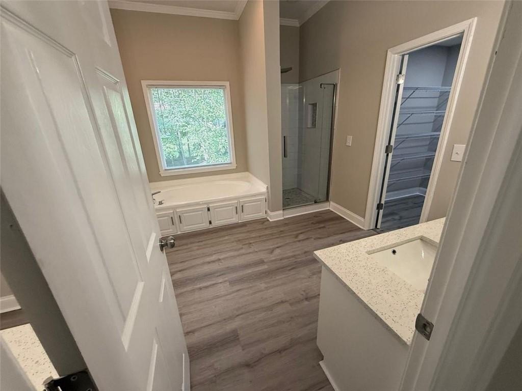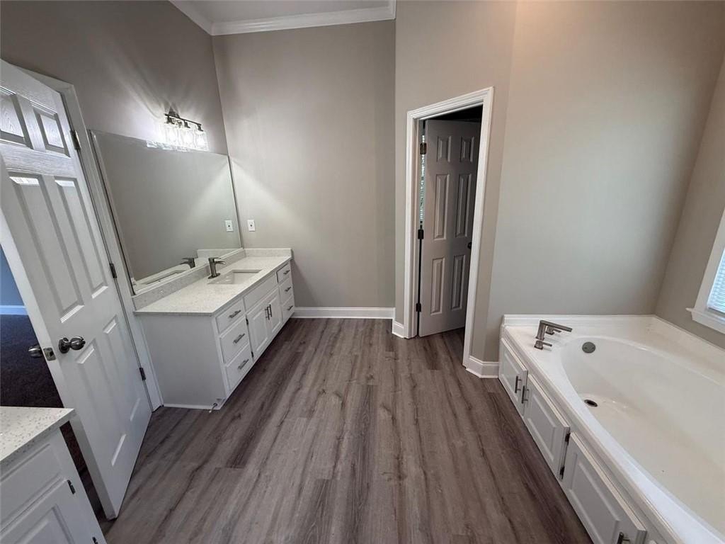 Retreat to the oversized primary suite, complete with a double vanity, soaking tub, and separate shower. Secondary bedrooms are generously sized and perfect for family or guests.