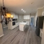The main level features a stunning chef’s kitchen with quartz countertops and stainless steel appliances, seamlessly connected to a bright and airy living room with a cozy fireplace and access to the rear deck overlooking the peaceful backyard.