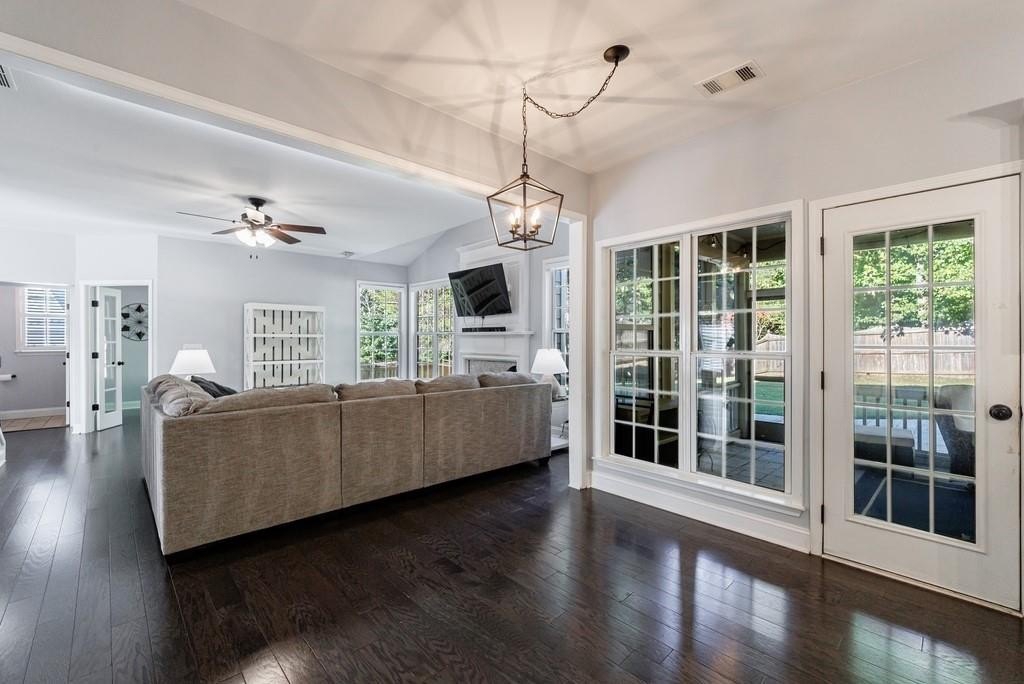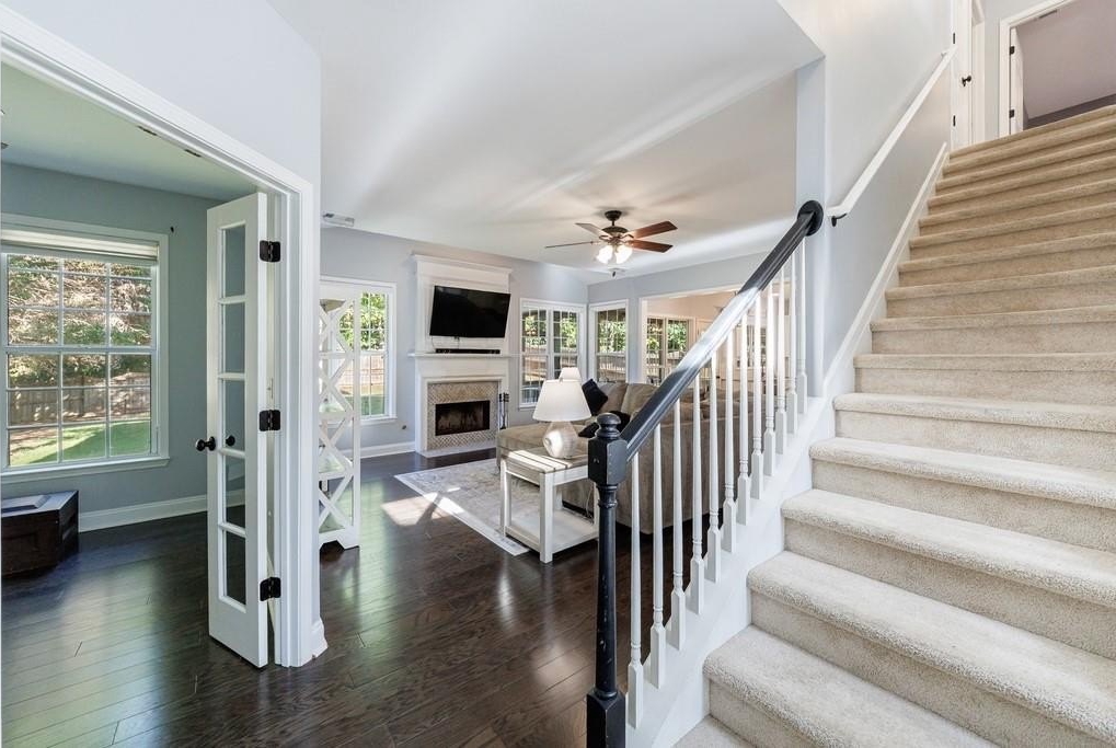 Beautifully updated 4 bedroom, 2.5 bath home in sought-after Brookshire! Features a renovated kitchen with granite counters, stainless appliances and a large island open to the fireside family room. Hardwoods throughout the main level. There is also an office with glass french doors on the main. Primary suite with large walk-in closet and private ensuite. Additional three bedrooms, hall bath and laundry upstairs. Enjoy outdoor living on the screened porch overlooking the stone patio with firepit. Fantastic neighborhood amenities include pool, tennis, pickleball, playgrounds and clubhouse. Minutes from Downtown Woodstock, Outlets of Atlanta, and I-575!