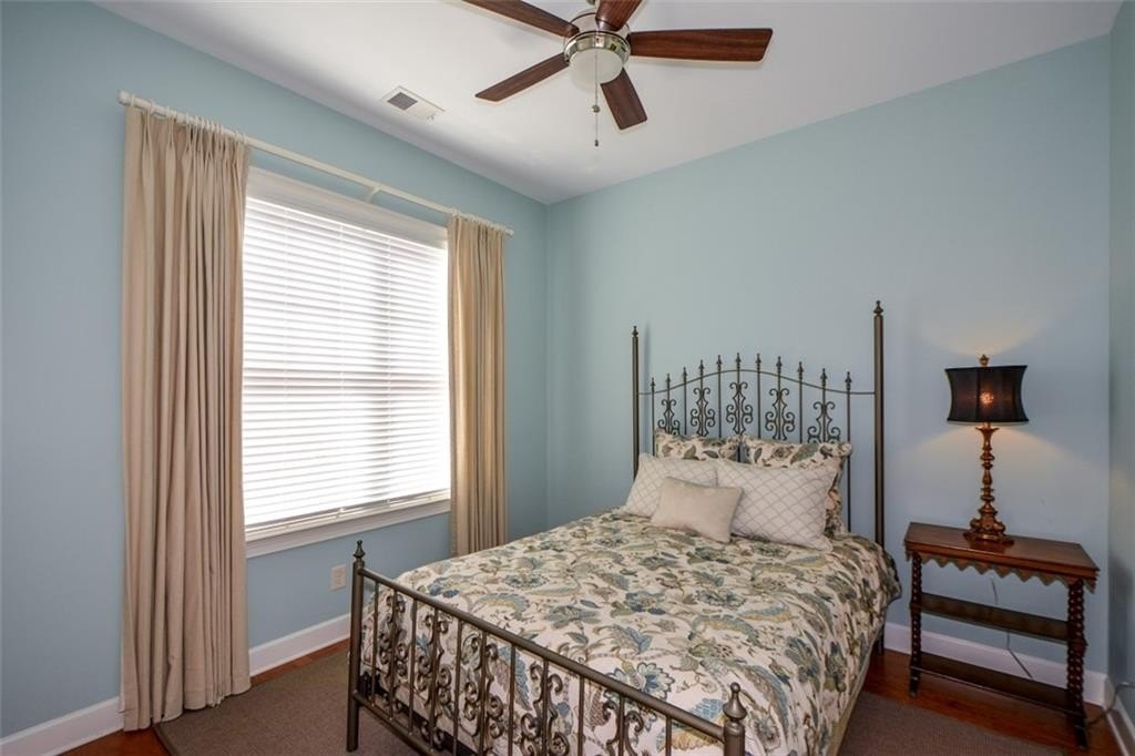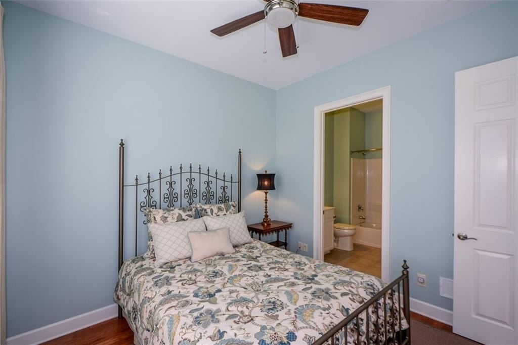 Welcome home to this beautiful stepless ranch home with a rocking chair front porch in Soleil Laurel Canyon, a security-gated 55+ neighborhood. Located on a private "eyebrow" street, this home has outstanding curb appeal and backs to the golf course. It is conveniently located across the street from the clubhouse and all amenities. Recent updates include a newer roof and HVAC system, a fenced backyard with beautiful landscaping that includes a stone patio and wall, updated interior and exterior paint colors, new Curry & Company light fixtures, new built-in bookshelves & cabinetry on both sides of the fireplace and a new microwave. The home features 8-foot doors and wood flooring throughout. The elegant primary suite has two spacious walk-in closets with a luxurious master bathroom that features two toilets (his & hers), two separate vanities (his & hers), a tub and walk-in shower that can be accessed from either vanity side. There are also two bedrooms on the other side of the home, each with its own ensuite bathroom. This home also features a large living room and dining room, as well as a flex space currently used as a private office, a convenient laundry room with a utility sink and cabinetry. The gourmet kitchen features double ovens and a built-in pantry with pull-out shelving that opens to the breakfast area and large family room with a fireplace and several windows for natural light to flow through. Step outside the family room, and you will find yourself in your own private sunroom. This beautiful space features stone flooring, a television, and is climate-controlled with a mini-split heating and cooling system. The windows also have screens allowing them to be opened during the Spring and Fall to enjoy the fresh air and pleasant temperatures during those times of the year. This is a stepless home, making it very easy to access the fully fenced backyard from the sunroom. Living in Soleil Laurel Canyon is a complete lifestyle. This active adult community features a 30,000+ square foot clubhouse with a ballroom, indoor and outdoor pools, a gym/aerobics studio, billiards, a card room, a library, and a theater, among other amenities. Outdoor activities offered include pickleball, tennis, bocce ball, greenhouse/gardening area, walking trails, and a fishing pier. There are several resident-led clubs with emphasis on fitness, gardening, bridge playing, bunco, cooking, wine socials, etc. Outside golf membership is optional. HOA dues are $407 monthly ($4884/year) and include lawn maintenance, internet service, a 24-hour manned security gate, the community center, and full access to all amenities.
