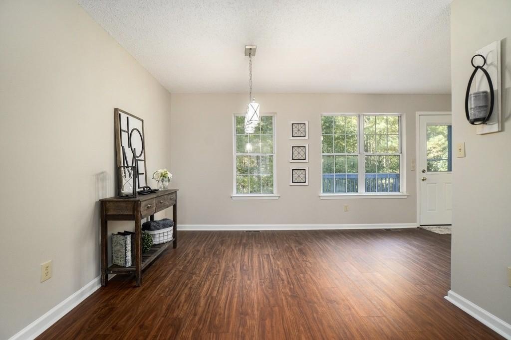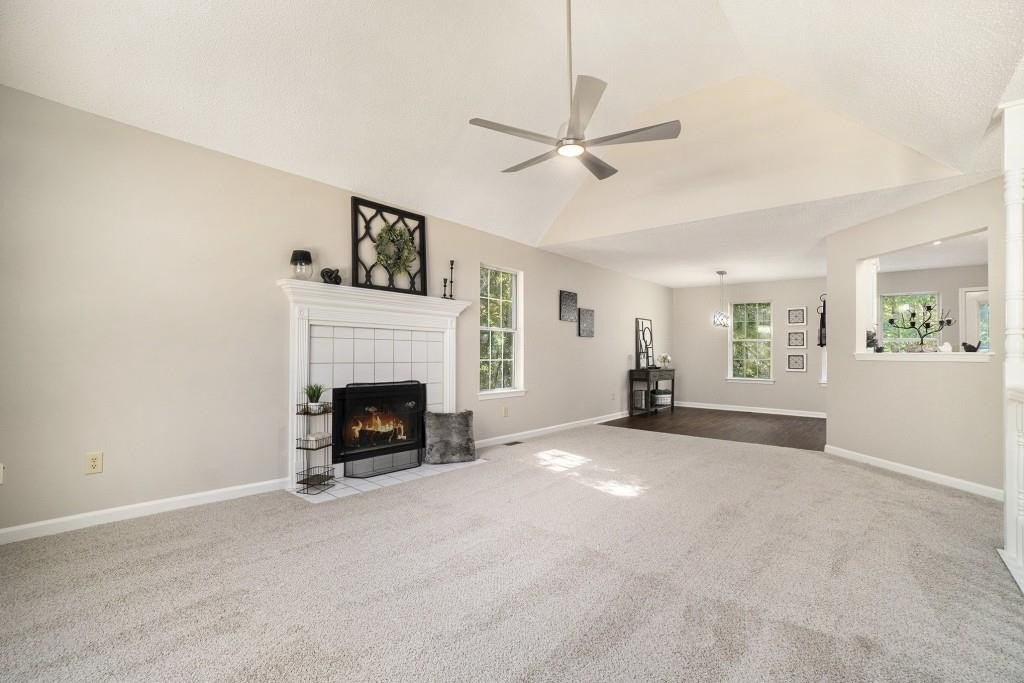 GREAT FLOORPLAN WITH IN-LAW SUITE!! HOME HAS BEEN REMODELED AND READY TO MOVE IN! THERE IS NEW CARPET, NEW VINYL PLANK FLOORING, NEW INTERIOR PAINT & NEW LIGHTING THROUGHTOUT! THE HOME HAS A LARGE VAULTED LIVING ROOM WITH PALLADIAN WINDOW AND TILE FIREPLACE. THE DINING AREA IS OPEN TO THE KITCHEN & LIVING ROOM AND HAS VINYL PLANK FLOORING. THE SPACIOUS KITCHEN HAS A PASS THROUGH WINDOW TO THE LIVING ROOM, A PANTRY AND NEW GRANITE COUNTERS WITH AN UNDERMOUNT STAINLESS STEEL SINK. THE HALLWAY THAT LEADS TO THE BEDROOMS ON THE MAIN LEVEL IS WIDE AND SPACIOUS AT THE END AND HAS ROOM FOR A DESK IF YOU PREFER. THE MASTER BEDROOM IS HUGE WITH A TREY CEILING AND LARGE WALK-IN CLOSET. THE MASTER BATH HAS A DOUBLE VANITY WITH NEW GRANITE COUNTERS, NEW VINYL PLANK FLOORING, GARDEN TUB AND SEPARATE SHOWER. THE TWO SECONDARY GUEST BEDROOMS ON THE MAIN LEVEL ARE SPACIOUS AND SHARE A HALL BATH WITH NEW VINYL PLANK FLOORING, NEW GRANITE COUNTERS AND A TUB/SHOWER COMBINATION. IN THE BASEMENT YOU WILL FIND, THE LAUNDRY CLOSET, A STORAGE CLOSET UNDER THE STAIRS AND A 2 CAR GARAGE WITH LARGE STORAGE AREA AND 2 NEW AUTOMATIC DOOR OPENERS. THERE IS A VERY LARGE BEDROOM IN THE BASEMENT WITH A WALK-IN CLOSET. IT ALSO HAS A CONNECTING FULL BATH THAT HAS A NEW GRANITE VANITY, TILE FLOORS AND A TUB/SHOWER COMBINATION. OFF OF THE BEDROOM, IS ANOTHER ROOM WITH NEW CARPET THAT COULD BE A SITTING AREA OR OFFICE. ON THE EXTERIOR OF THE HOME IS A FRESHLY STAINED DECK FOR ENTERTAINING GUESTS AND GRILLING. THE YARD IS VERY LEVEL AND THE BACKYARD BACKS UP TO WOODS. THIS HOME IS A MUST SEE AND WON'T LAST LONG! GREAT LOCATION!