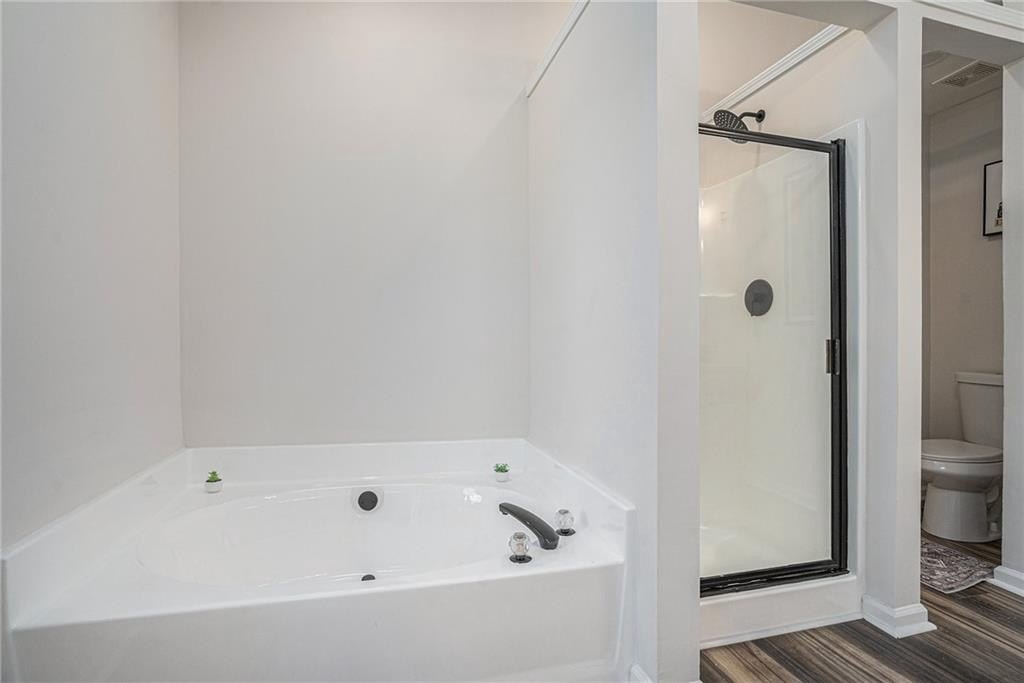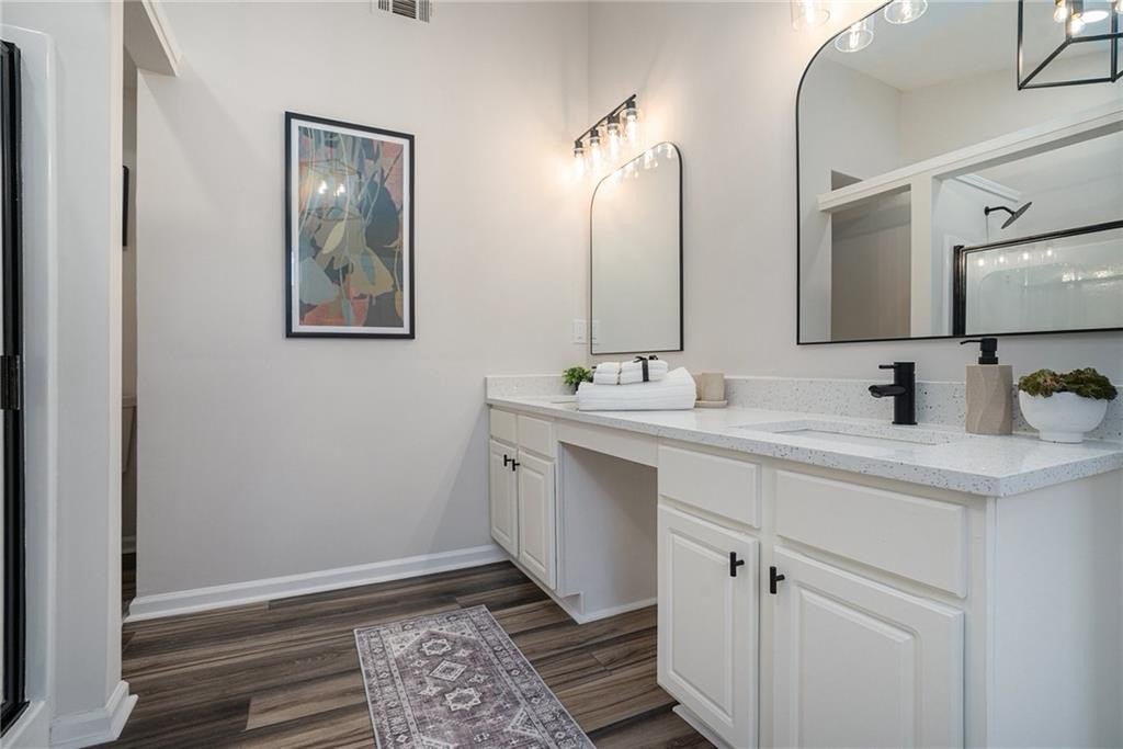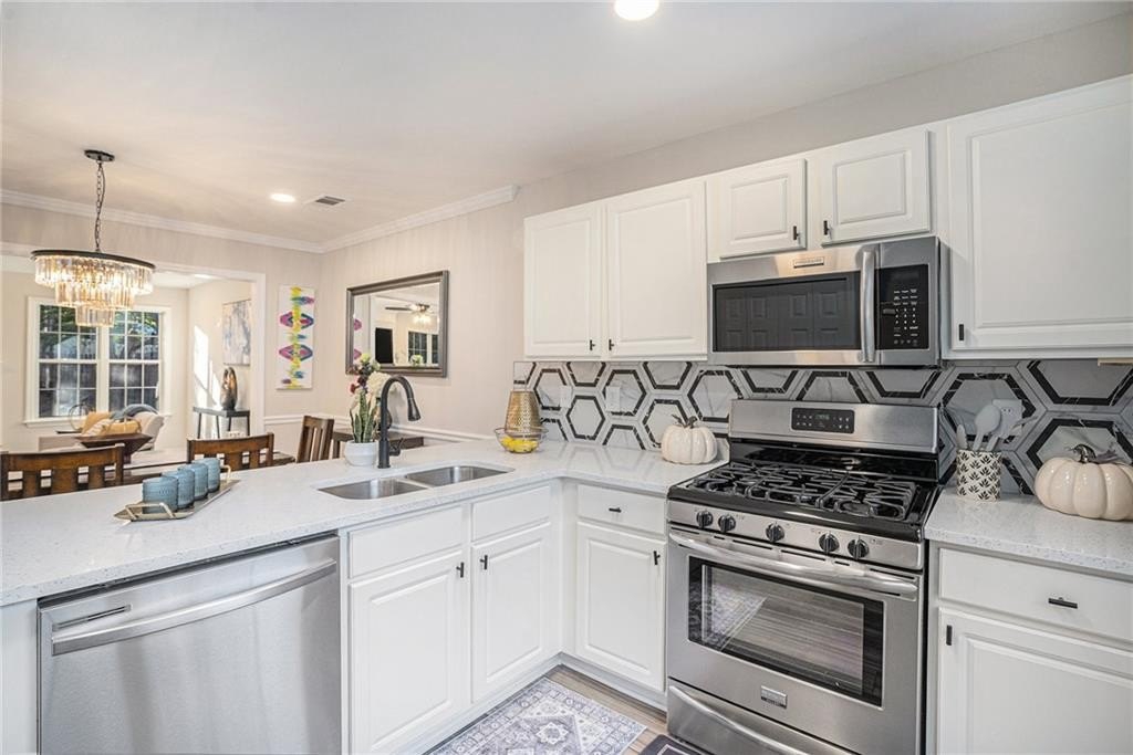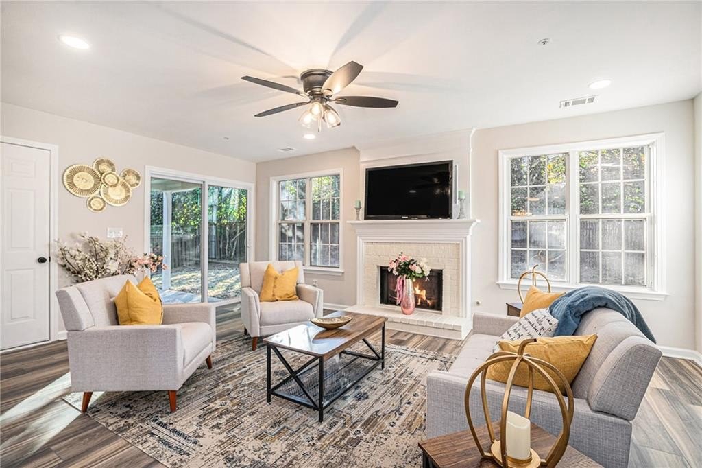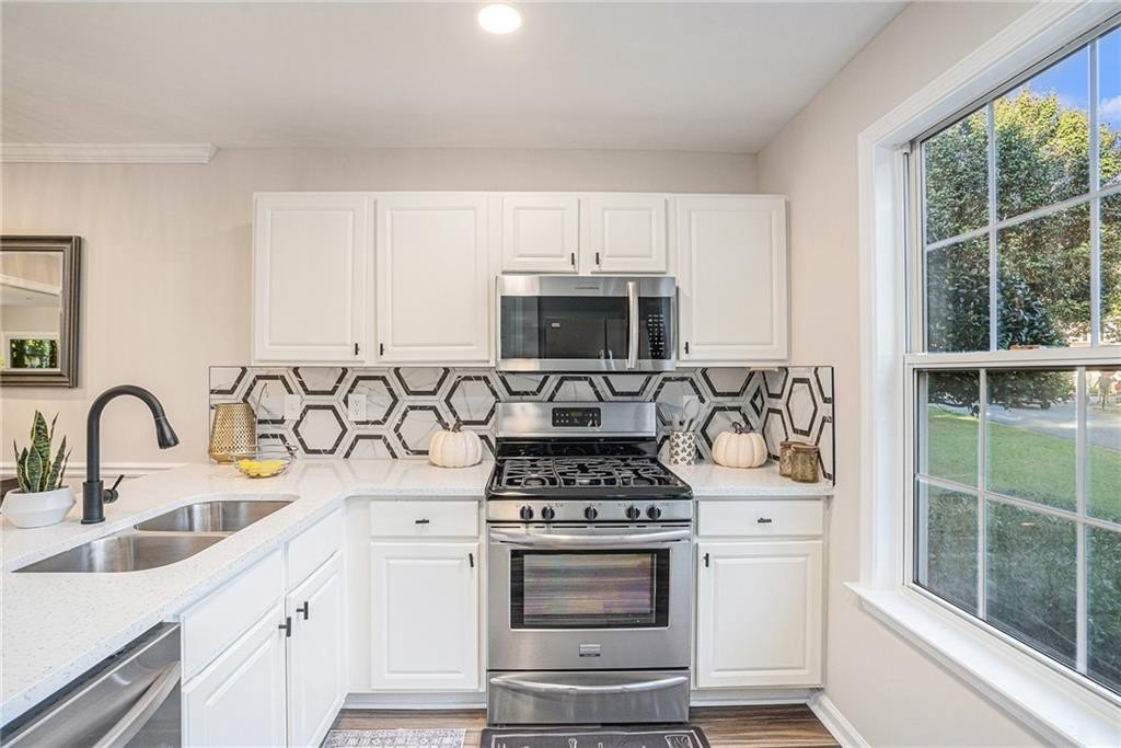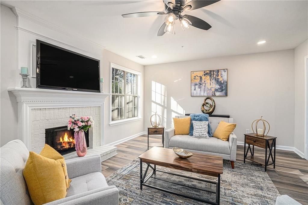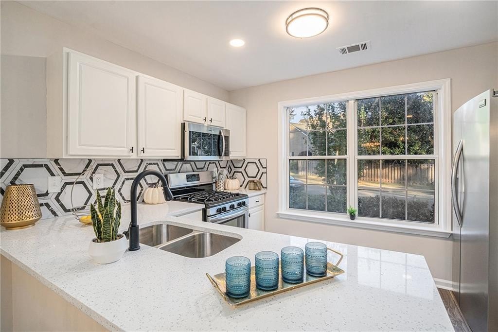 Situated in the highly desirable Gables at East Worthington community of East Cobb, this beautifully renovated home offers the perfect balance of style, comfort, and convenience. Inside, fresh paint, brand-new flooring, and plush new carpet create a clean, inviting feel filled with natural lighting throughout. The kitchen features high-end quartz countertops, white cabinetry, stainless steel appliances, and a layout that flows effortlessly into the family room—ideal for entertaining or relaxing at home. A half bathroom on the main level adds everyday convenience. Upstairs, the oversized primary suite offers a peaceful retreat with a huge walk-in closet and a beautifully redesigned bathroom featuring a double vanity with matching quartz counters, modern fixtures, and a spacious layout. Two additional bedrooms share a full bath, providing flexibility for family or a home office, while the laundry room conveniently located upstairs adds ease to daily living. Outdoors, a private, level, fully fenced backyard with a covered patio offers the perfect setting for morning coffee, outdoor dining, or weekend gatherings. Located within minutes of highly rated East Cobb schools, with easy access to I-75, shopping, dining, parks, and local amenities, this move-in-ready home delivers modern comfort in one of Marietta’s most sought-after neighborhoods. Schedule your private showing today and experience all that this home has to offer.