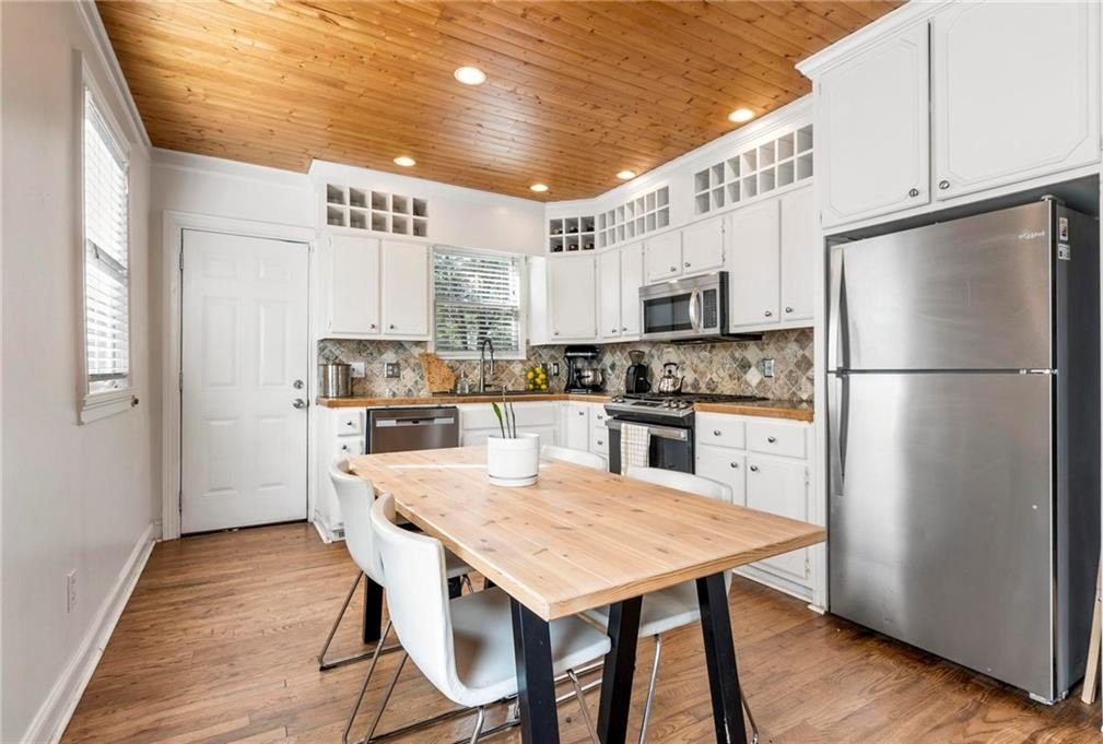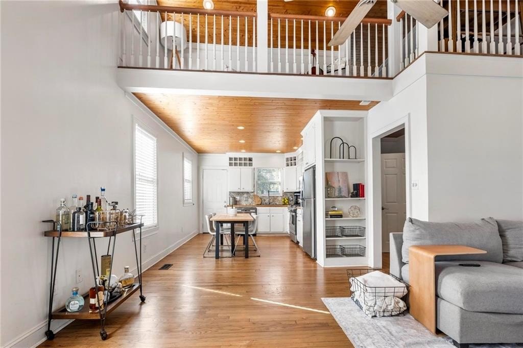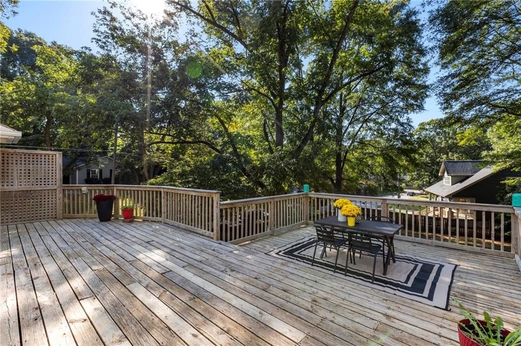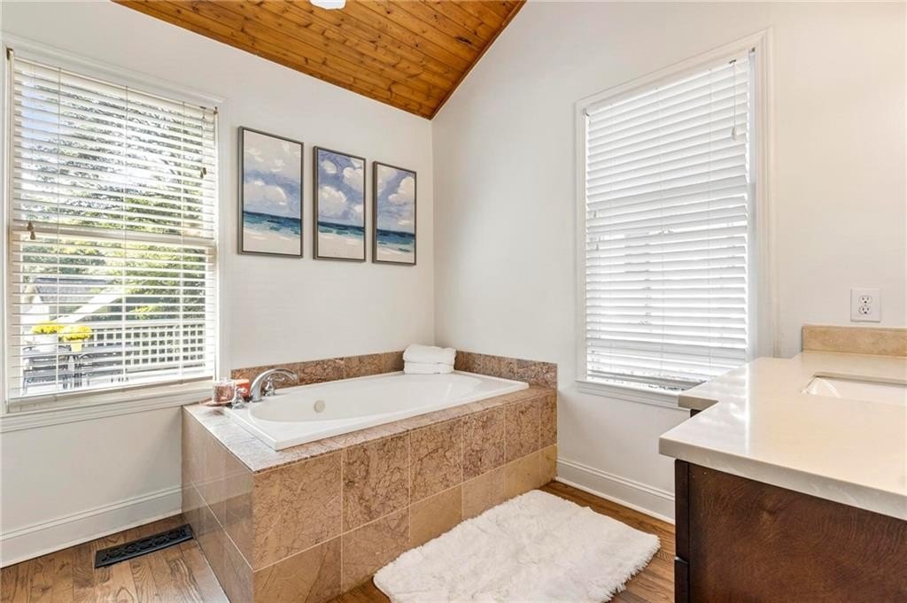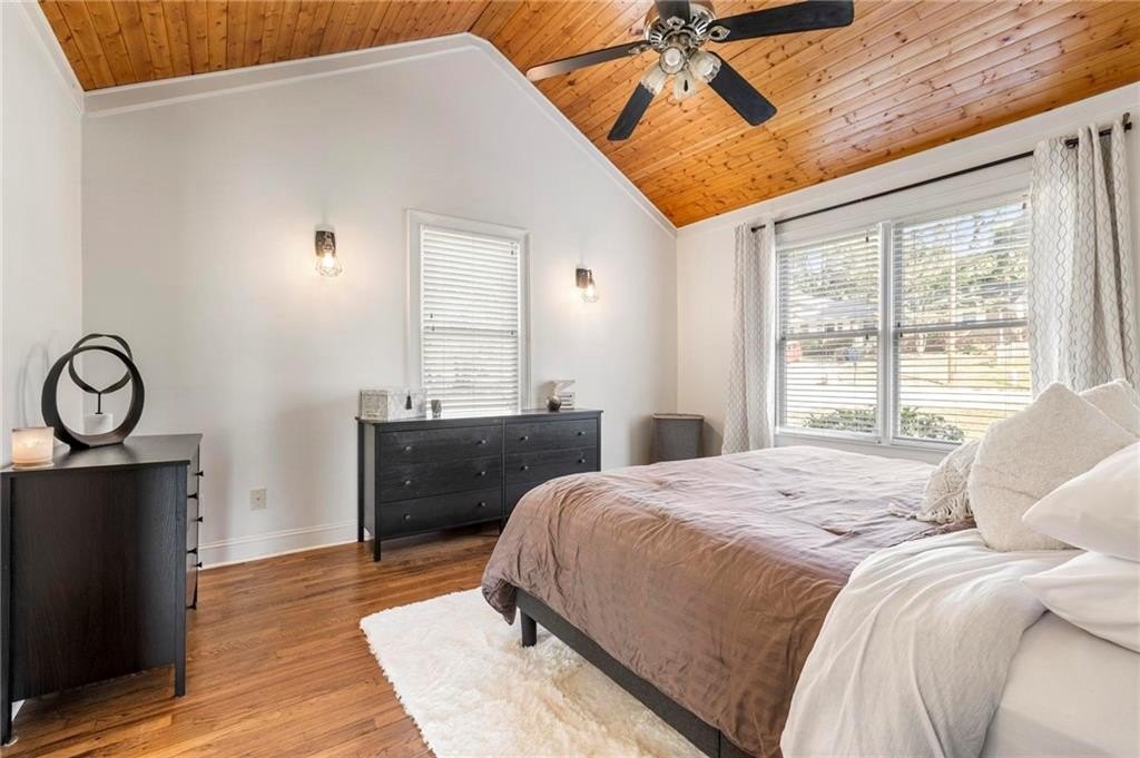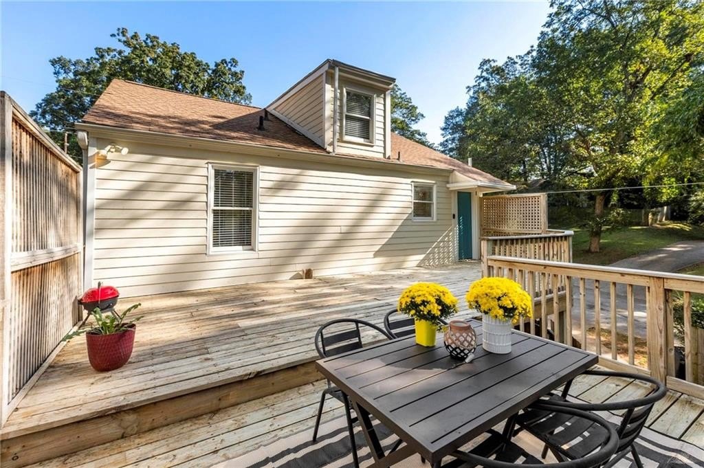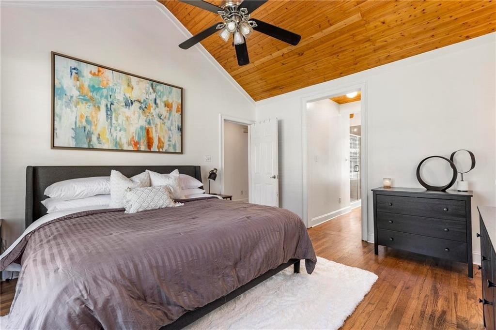 Welcome to this charming home on a spacious corner lot in Historic College Park! Step inside to discover a stunning two-story living room featuring a stone fireplace and original hardwood floors. The bright and open kitchen boasts white cabinetry and stainless steel appliances, with easy access to a large back deck that overlooks the fenced backyard—perfect for outdoor gatherings. The main level includes a lovely en suite primary bedroom, complete with a soaking tub, separate shower, and walk-in closet. Downstairs, you'll find two additional en suite bedrooms, offering extra space for guests or relaxation. Don’t miss the inviting loft area upstairs, ideal for a cozy reading nook or daybed!