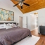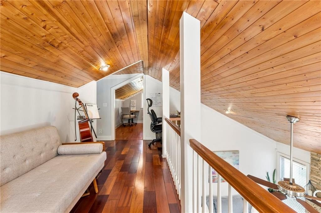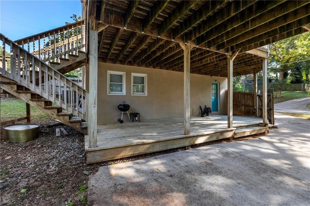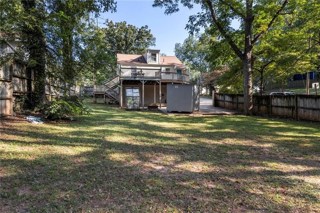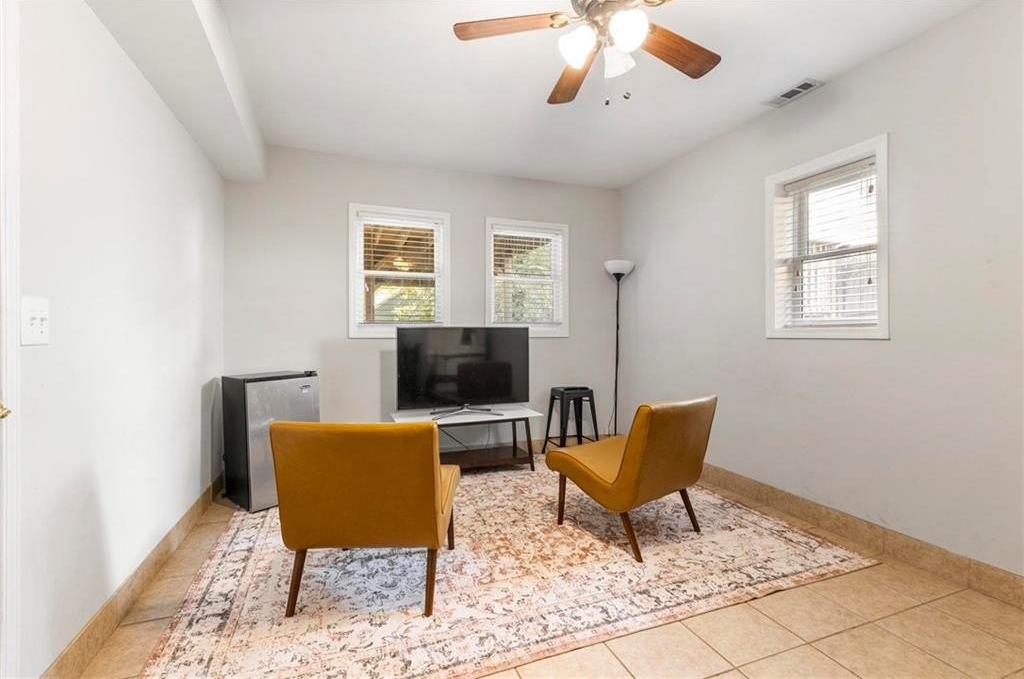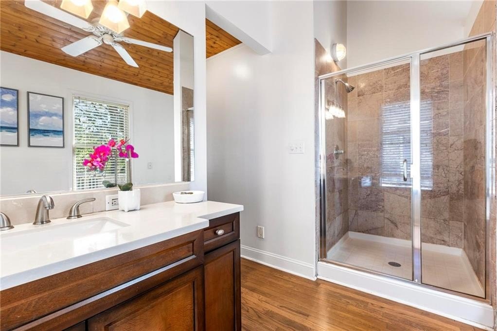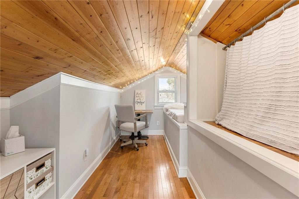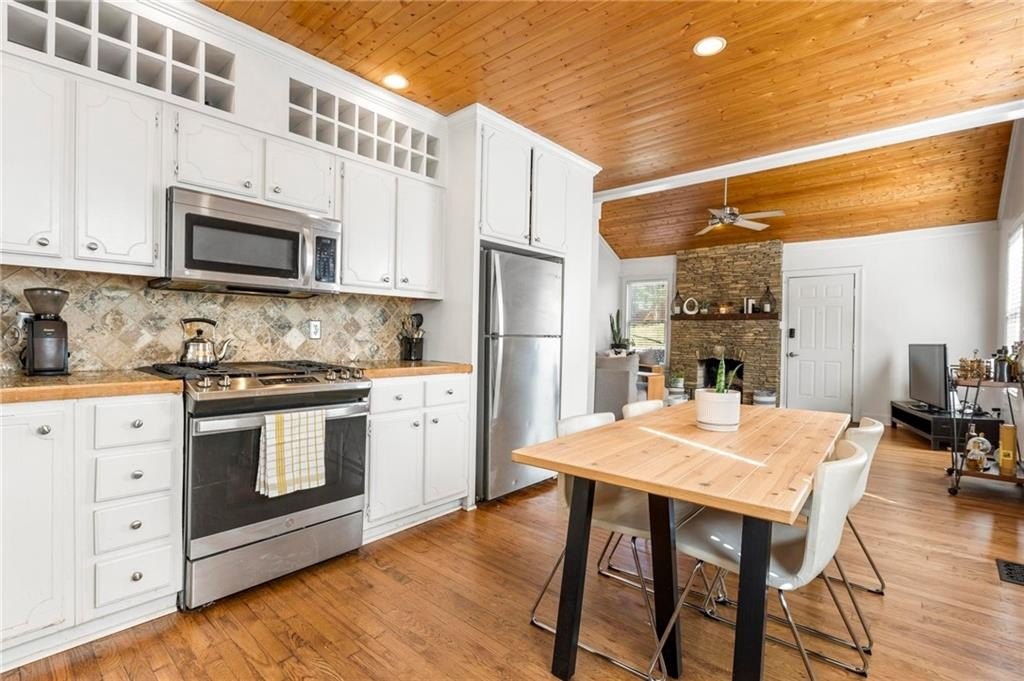 Welcome to this charming home on a spacious corner lot in Historic College Park! Step inside to discover a stunning two-story living room featuring a stone fireplace and original hardwood floors. The bright and open kitchen boasts white cabinetry and stainless steel appliances, with easy access to a large back deck that overlooks the fenced backyard—perfect for outdoor gatherings. The main level includes a lovely en suite primary bedroom, complete with a soaking tub, separate shower, and walk-in closet. Downstairs, you'll find two additional en suite bedrooms, offering extra space for guests or relaxation. Don’t miss the inviting loft area upstairs, ideal for a cozy reading nook or daybed!