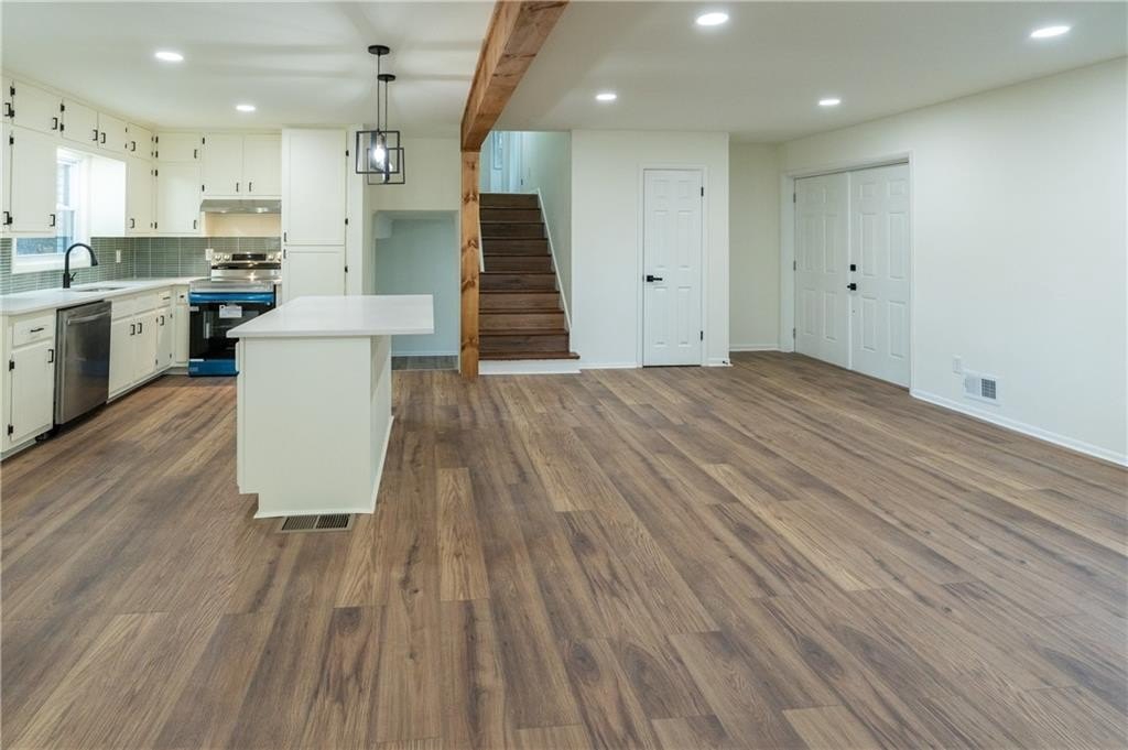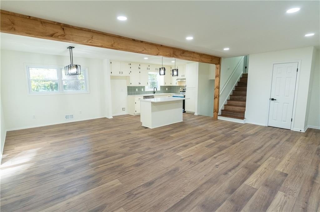 Inside, the open-concept design showcases all-new flooring, fresh Sherwin Williams paint, and modern light fixtures. The chef’s kitchen shines with a new island, quartz countertops, stainless steel appliances, refinished cabinets, and designer backsplash. Bathrooms have been completely upgraded with new vanities, tile showers, new toilets, and contemporary lighting. The finished lower level adds flexibility with a family room, half bath, laundry, or the option for an extra bedroom.