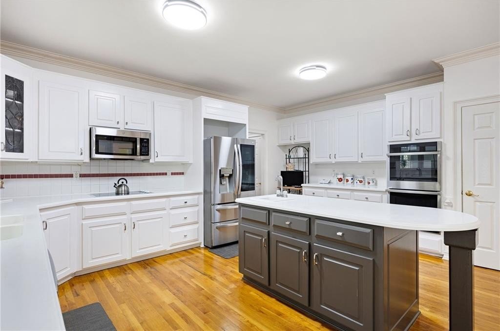 Perfect multi-generational floor plan with some of the largest square footage homes available. Highly rated school system, Sought-after community. Nestled on .9 acre, private. Floor plan boasts a 2nd kitchen, 6 bedrooms and 5 full bathrooms, a circular driveway, 3-car garage, and timeless curb appeal. Step into the two-story foyer and you’ll immediately notice the rich hardwood floors and custom wood shutters that carry throughout the main level. The home’s thoughtfully designed layout features a formal dining room with a tray ceiling and a formal living room/piano room. Two-story great room stuns with soaring cathedral ceilings and a fireplace. Triple French doors lead to the oversized eat-in kitchen, complete with an abundance of white cabinetry, built-in desk/workspace, stainless steel appliances including a double oven, center island, and pantry. A main level laundry with built-ins conveniently located off the kitchen and garage. The light and bright sunroom opens to the rear deck, seamlessly blending indoor and outdoor living. The main-level bedroom and full bath are perfect for visitors/family/friends. Upstairs, the luxurious primary suite impresses with tray ceilings, a sitting room, flex space and an huge custom closet with built-ins. The amazing ensuite bathroom is your personal retreat with dual vanities, soaking tub, shower, bidet, and private water closet. 3 additional bedrooms - one with an ensuite bathroom and 3rd full bathroom completes the second floor. The finished terrace level offers incredible flexibility, with a second living room and a 2nd fireplace, media room, full bath, bedroom/office, 2nd kitchen, and bar area-perfect for multi-generational living or entertaining. Step outside to your private backyard oasis, complete with an in-ground pool with diving board, covered patio with dry-below system, and fully fenced backyard. Located just minutes from The Avenues of West Cobb, top-rated schools, excellent dining, and numerous parks. This home offers the perfect balance of luxury, privacy, and convenience.