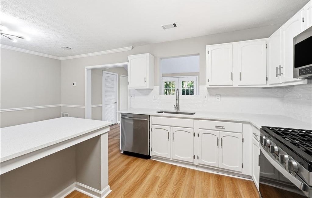 Discover this beautifully renovated 2-bedroom, 2.5-bath townhome nestled in a tranquil community. The modern kitchen features high-end stainless-steel appliances, elegant granite countertops, and ample cabinet space. Enjoy luxurious, durable laminate flooring throughout the main level and brand-new carpet upstairs.