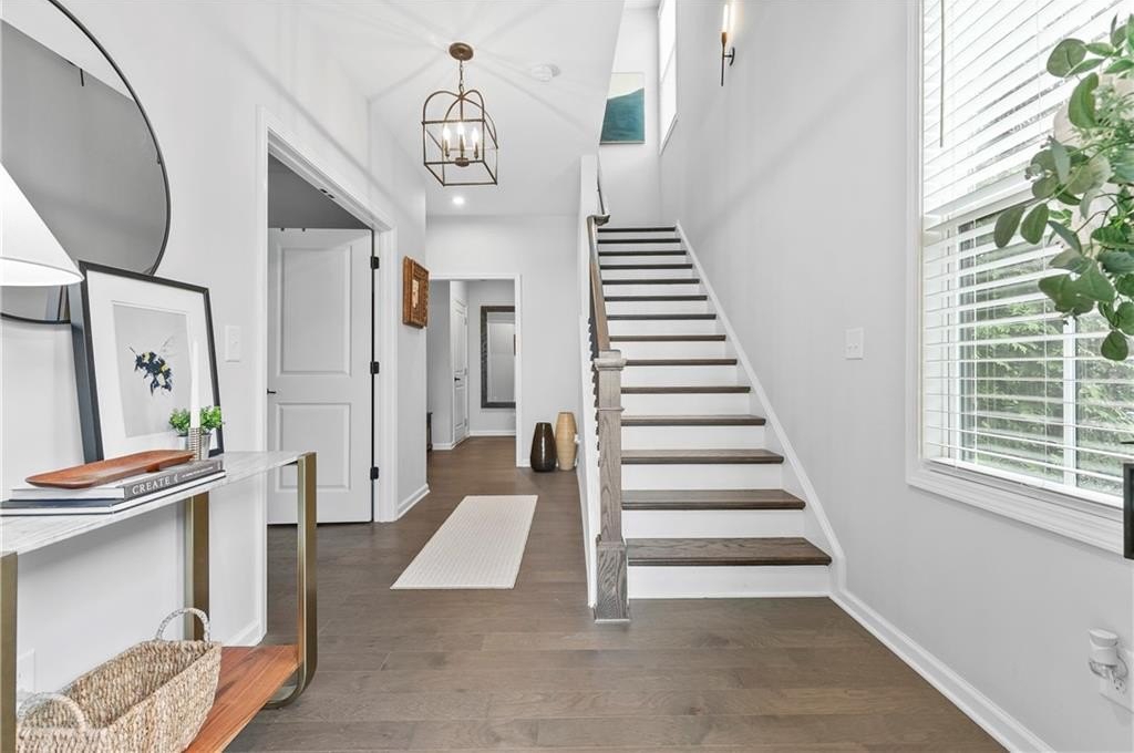 Step onto the inviting covered front porch — the perfect spot to enjoy your morning coffee or unwind in the afternoon — and enter into a bright, open foyer on the lower level. This floor includes a guest bedroom with views of the porch, a full bathroom, a large storage closet, and a convenient built-in bench near the door to the garage. There’s also a second entrance at the back of the home next to the garage for added convenience.