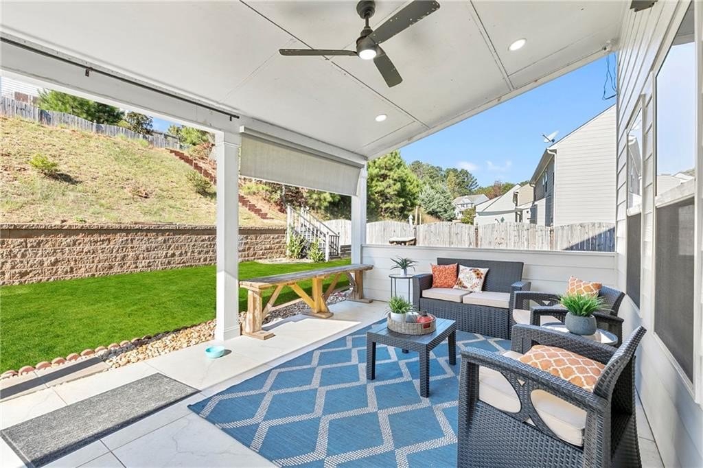Enjoy outdoor living at its best on the covered, tiled back porch overlooking a large, fenced backyard perfect for entertaining, play, or pets. The front porch has been upgraded with custom railing and tile, adding charm and curb appeal.