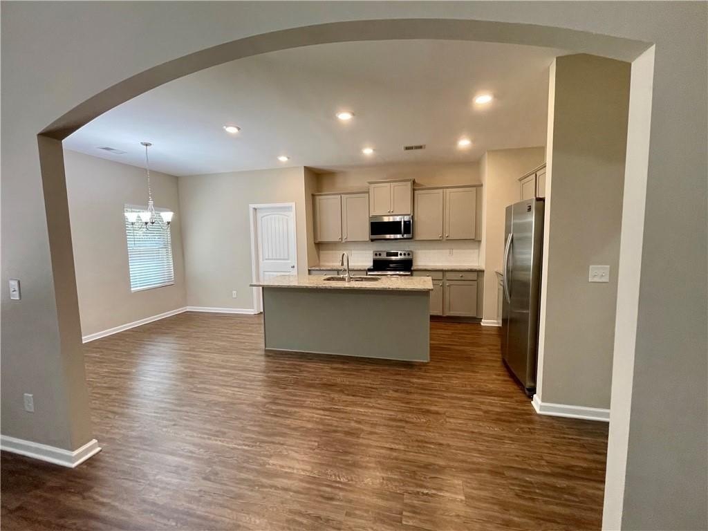 Located in desirable “Ansleigh Farms” subdivision! This spacious ranch features new paint (inside and out) and is move in ready! The covered front porch opens to a nice size foyer (10 ft ceilings throughout) with arched entries. The great room features a tray ceiling, light/fan and fireplace that opens to a fantastic dine in kitchen. The kitchen features plenty of painted cabinets, a large island with granite countertop and bar seating, recessed lighting, walk-in pantry and stainless appliances [Range, Microwave Vent, Dishwasher and Refrigerator]. Laundry room has a pull down stairs to the attic. The primary bedroom located on the left side of the house features a vaulted ceiling and private sitting room, and double closets. The primary bath features double sink vanity, separate tub and shower. Two additional vaulted bedrooms and a full hall bath are located on the right side of the house. Rear patio and a privacy fenced backyard! NO HOA! The Seller will start reviewing offers starting 10/27/2025 - so there is plenty of time to schedule a showing! Investor owned, sold “as is” with no Seller disclosures, but well cared for! Supra Lockbox only, Agents please use ShowingTime to schedule.