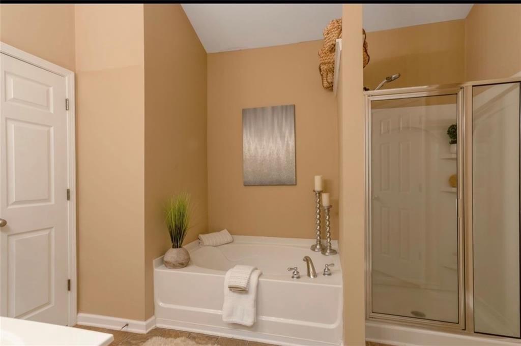 Welcome HOME, run don't walk to experience everything this amazing home has to offer. Home is beautifully STAGED and is perfect for first-time Buyers or empty nesters. Home features three spacious bedrooms and two full bathrooms. The primary suite has a sitting area and the spa like bathrooms has a separate soaking tub and shower. You will absolutely love the gourmet kitchen with stained cabinets and breakfast bar. All appliances are included, refrigerator, dishwasher, microwave, washer and dryer. All secondary bedrooms are good size with a hall bathroom and fantastic laundry room with full size