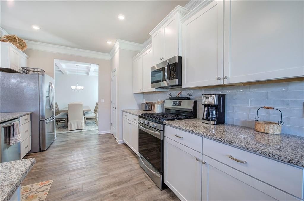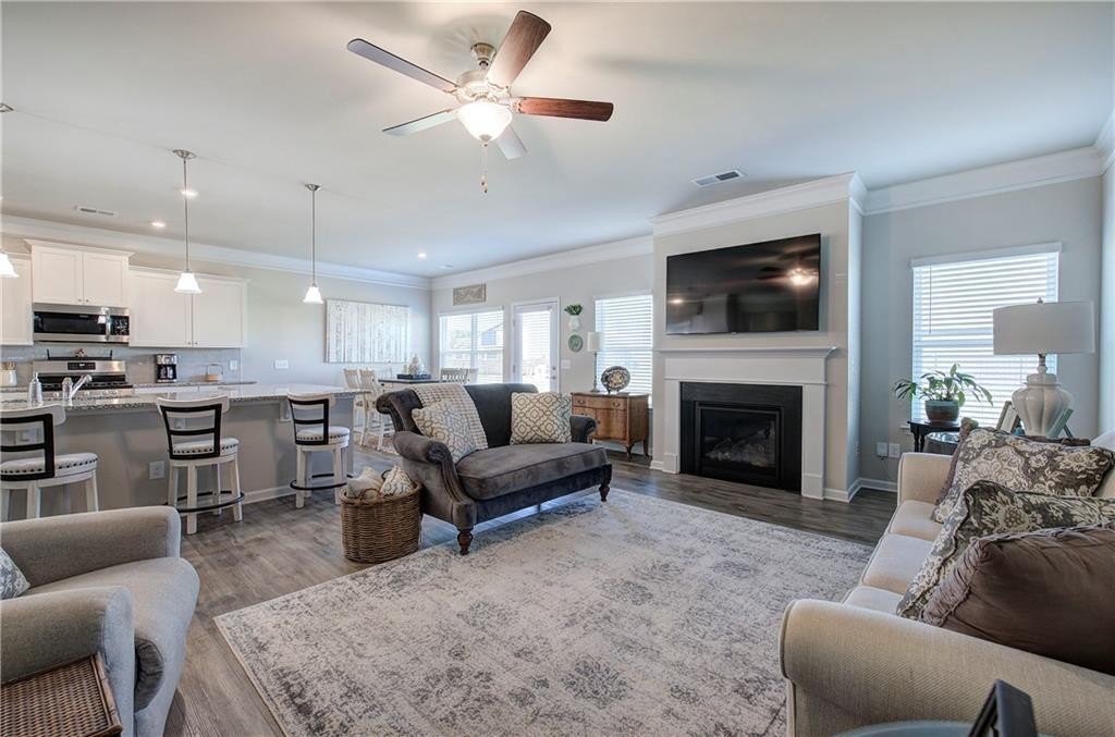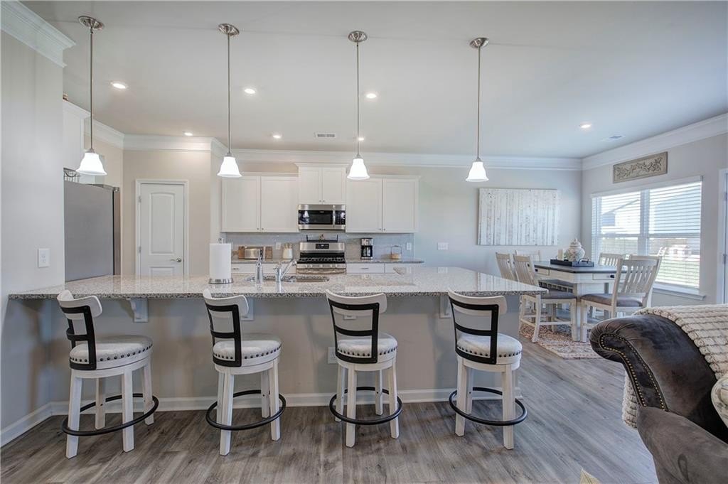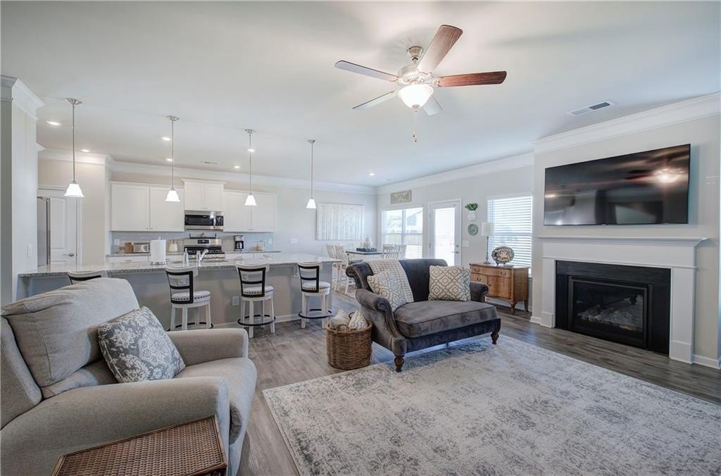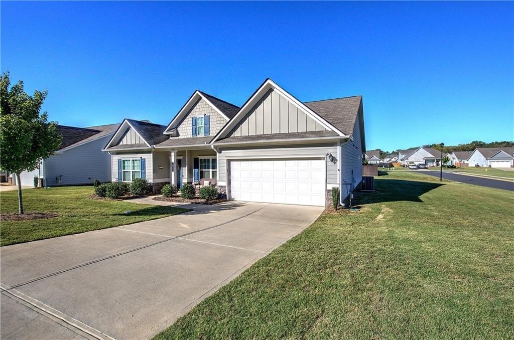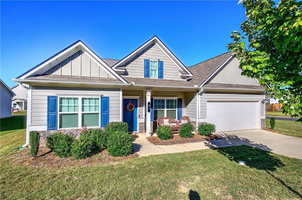 Single-Level Elegance with Open-Concept Living! Welcome home to this beautifully designed, single-level gem—where open-concept living meets comfort, style, and convenience! Only three years old and meticulously maintained, this spacious home offers the perfect blend of modern design and thoughtful functionality, all without a single stair to climb. Step inside to find an expansive layout ideal for both entertaining and everyday living. The heart of the home is the stunning kitchen, featuring a large granite bar that can comfortably seat up to eight and still have room to make cookies, upgraded gas stove and refrigerator, abundant drawer space, and a large pantry. A bright breakfast area provides a cozy spot for morning coffee, while the separate formal dining room—with elegant coffered ceilings—sets the stage for gatherings and special occasions. The inviting living room offers a sense of warmth and connection, centered around a beautiful fireplace that serves as the main focal point. The home’s thoughtful layout continues into the oversized primary suite, which provides ample space for your ideal furniture arrangement. The ensuite bathroom features a massive, tiled shower with bench seating, a wide dual-sink vanity with generous counter space, and two large closets for storage. The huge walk in closet connects directly to the laundry room—an exceptionally convenient design that also allows a second entrance for household use. Storage is abundant throughout this home, with multiple closets perfectly placed, including a mudroom closet, a front hall closet, and additional storage options that make organization effortless. On the opposite side of the home, you’ll find two spacious secondary bedrooms, one with a walk-in closet, along with two additional full bathrooms—ideal for guests or family members. With so much built-in storage, you can actually use your two-car garage for parking, not overflow! Enjoy life in this friendly, newer community—perfect for evening walks or meeting neighbors at the community pool and playground. All of this comes with the convenience of city living: close to the Cartersville Market, downtown festivals and concerts, museums, shopping, and easy access to I-75 for effortless commuting. Experience single-level living at its finest—modern, open, and perfectly located in the heart of Cartersville. Agent is related to the owner and has an interest in this sale.